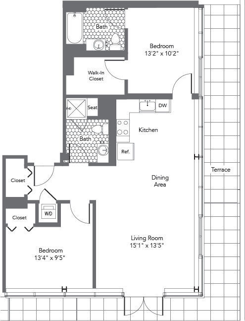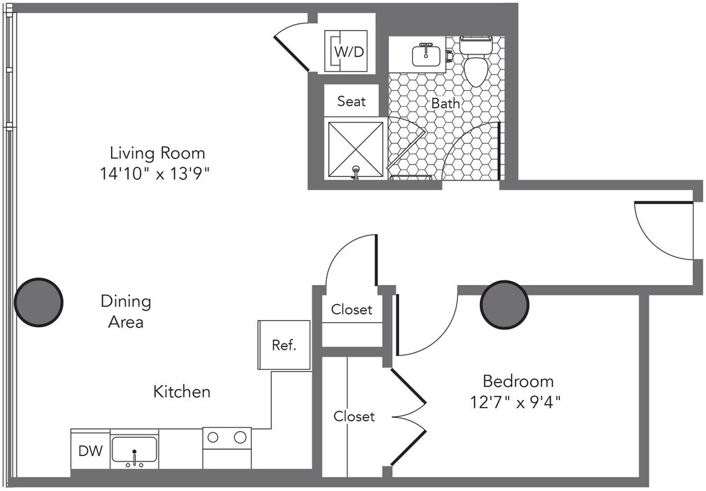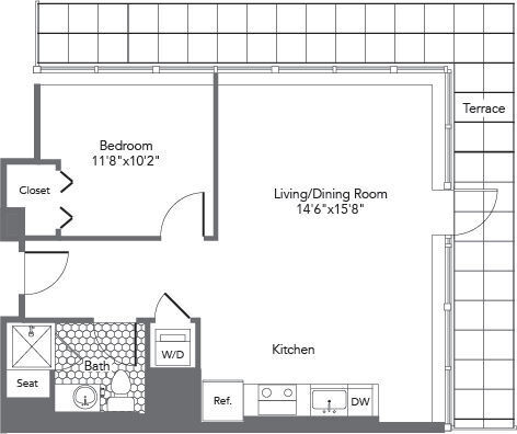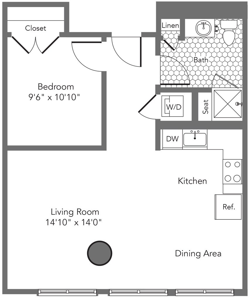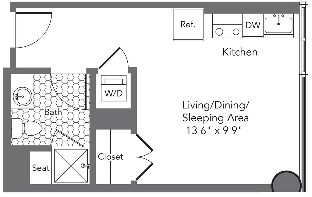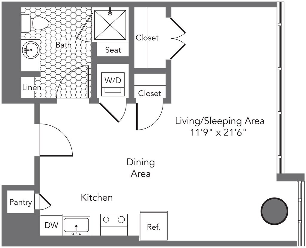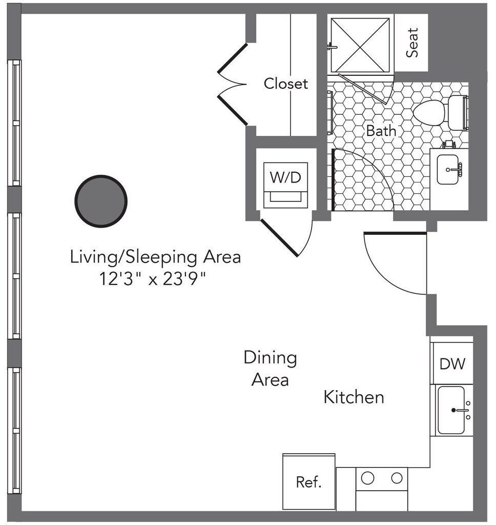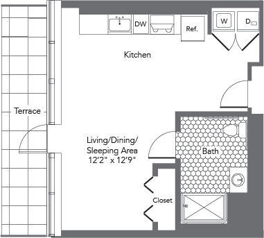 Apartment Model: SD$1,607Studio, 1 Bath, 355 sq ftAvailable November 7, 2025Floor plans are artist's rendering. All dimensions are approximate. Actual product and specifications may vary in dimension or detail. Not all features are available in every rental home. Prices and availability are subject to change. Base rent is based on monthly frequency. Additional fees may apply, such as but not limited to package delivery, trash, water, amenities, etc. Deposits vary. Please see a representative for details.