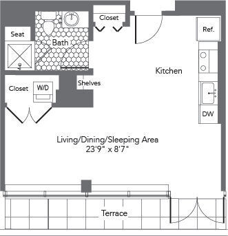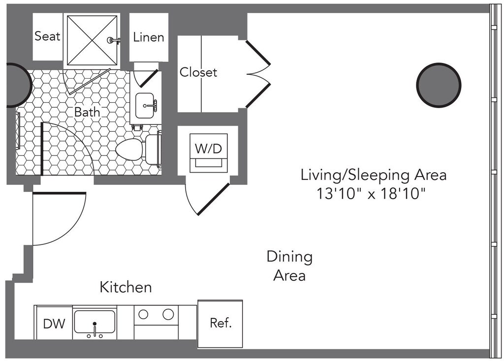 Studio, 1 Bath, 355 sq ftAvailable Nov 7Model Gallery