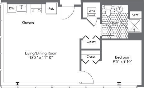 Apartment Model: SAFrom $1,600Studio, 1 Bath, 503 sq ftAvailable NowFloor plans are artist's rendering. All dimensions are approximate. Actual product and specifications may vary in dimension or detail. Not all features are available in every rental home. Prices and availability are subject to change. Base rent is based on monthly frequency. Additional fees may apply, such as but not limited to package delivery, trash, water, amenities, etc. Deposits vary. Please see a representative for details.
