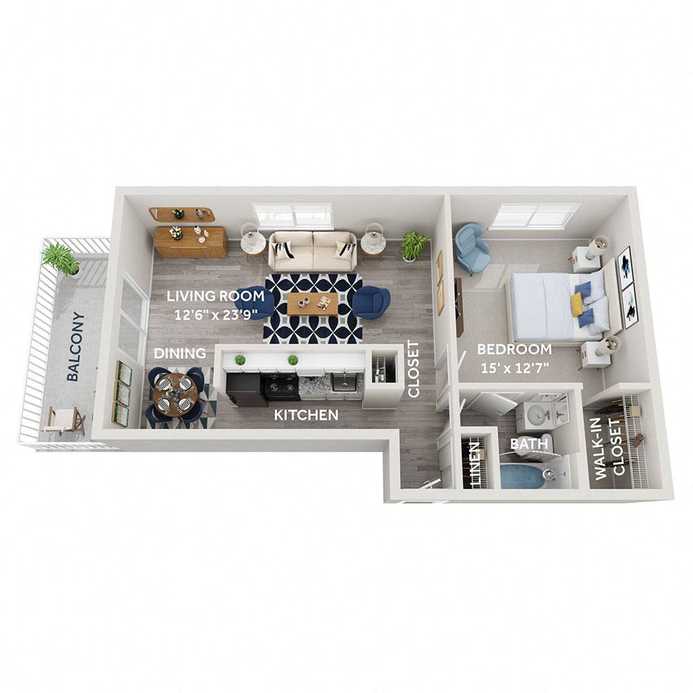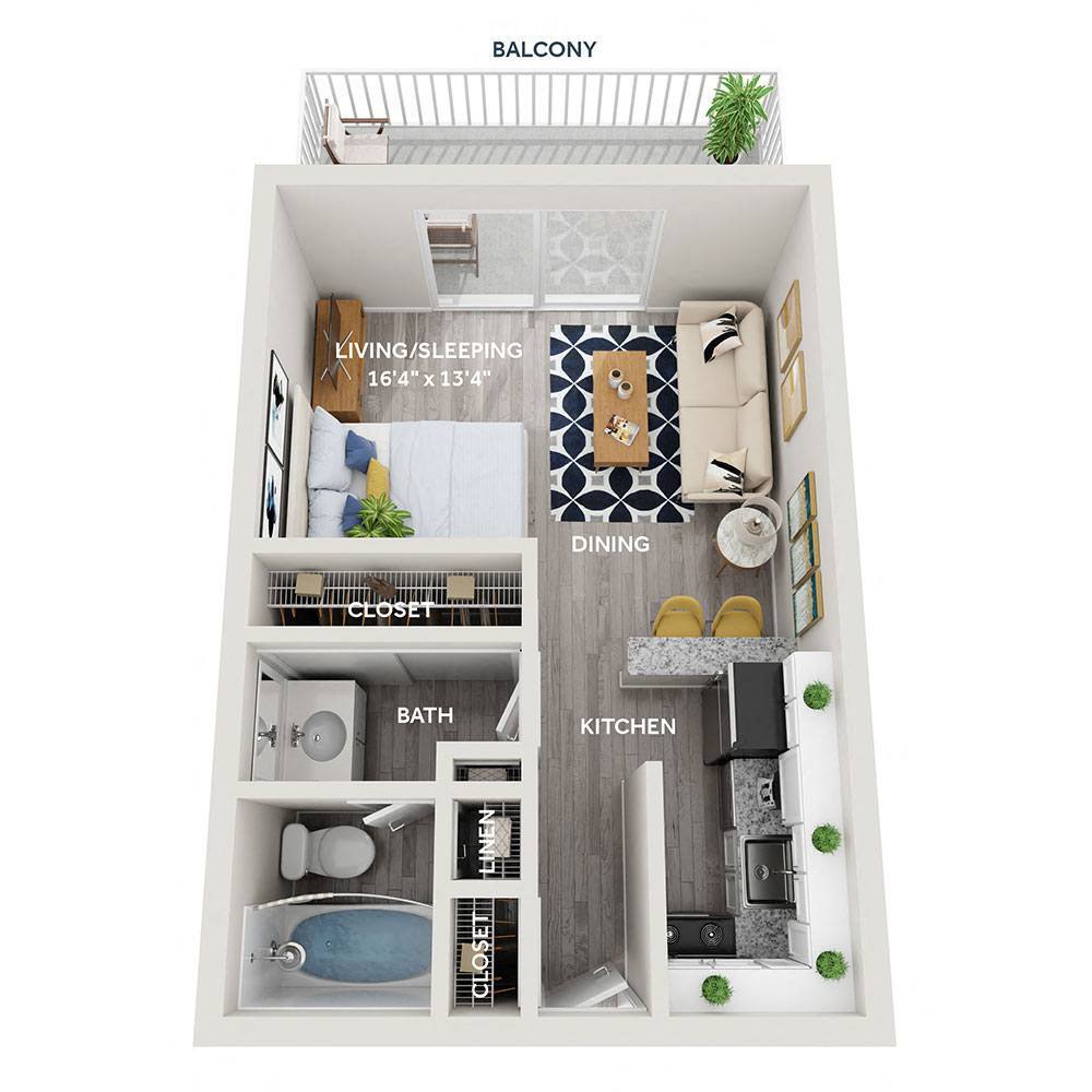 Studio, 1 Bath, 384 sq ftAvailable NowModel Gallery