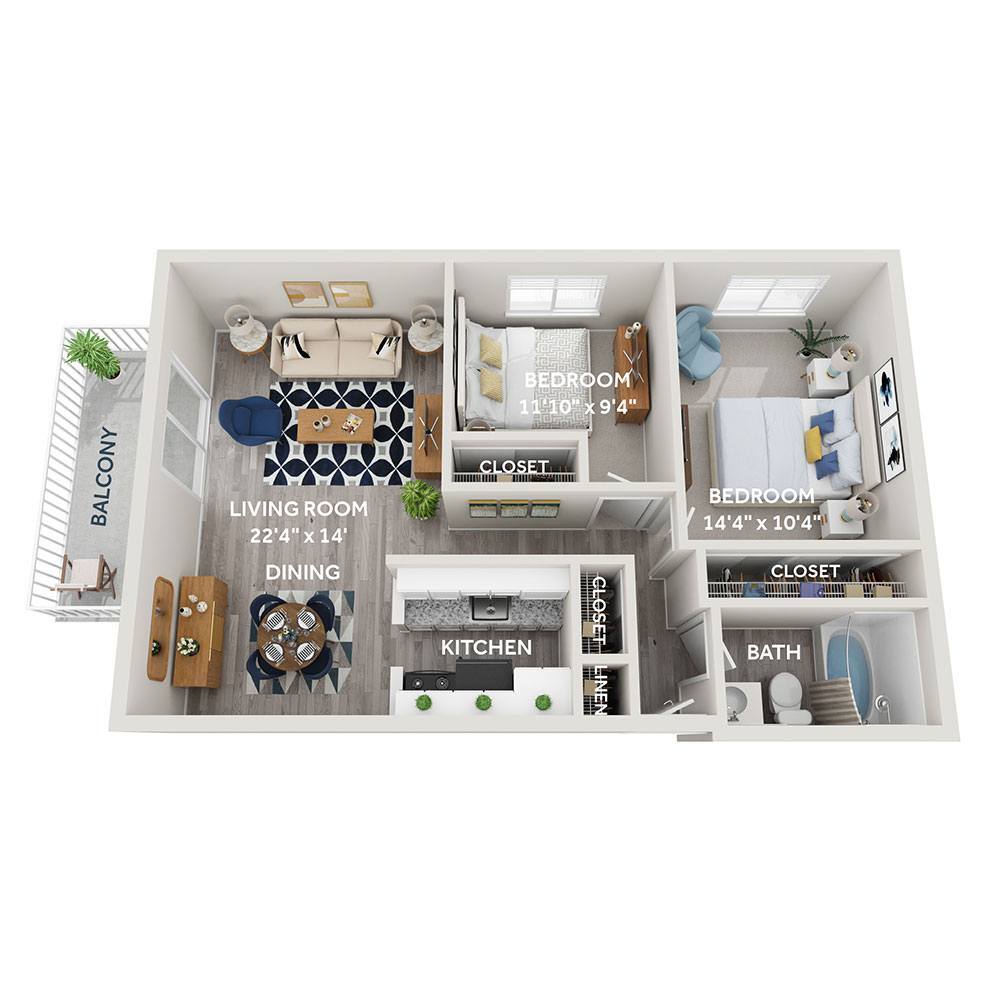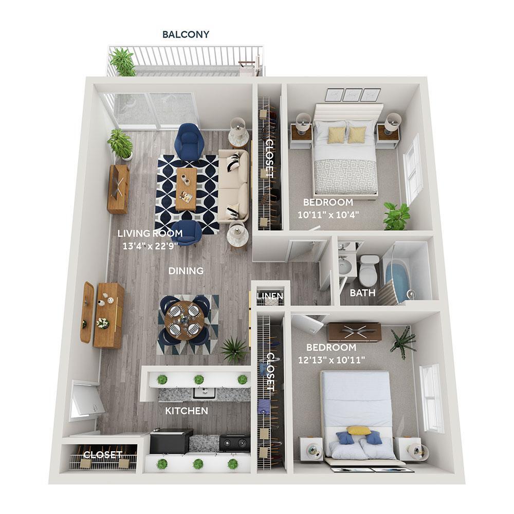 2 Beds, 1 Bath, 795 sq ftAvailable NowModel Gallery