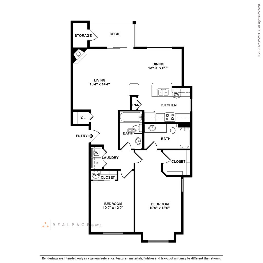 2 Beds, 2 Baths, 1088 sq ftLargest 2 BedroomThis is the largest 2 Bedroom at this PropertyModel Gallery
