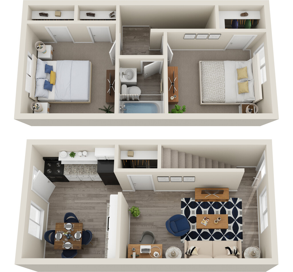 2 Bedrooms at The Heights Townhomes currently start from $995. Call today for more info!
