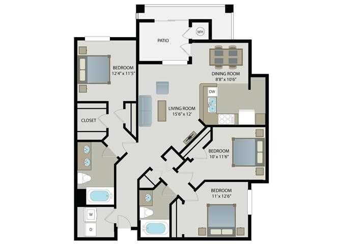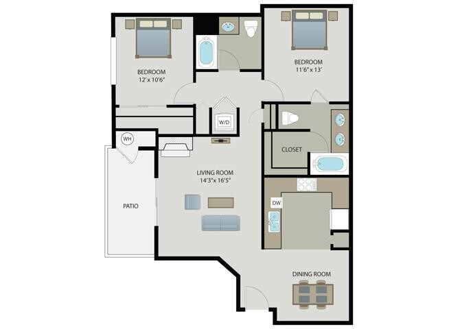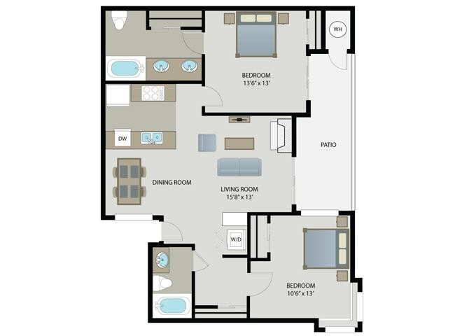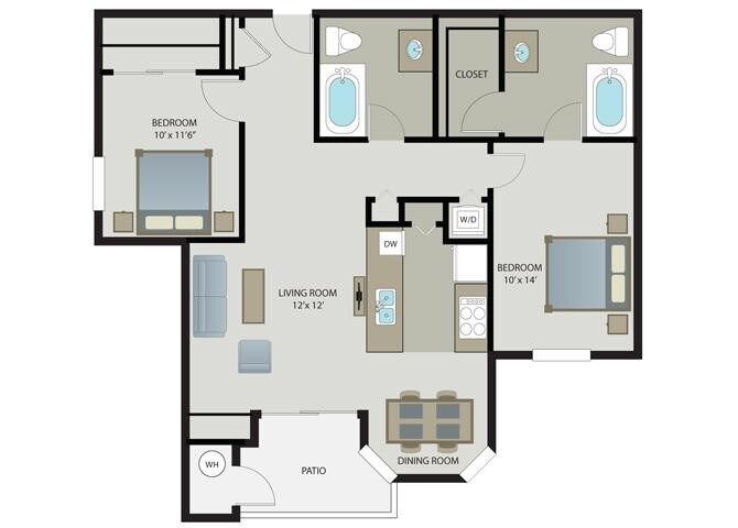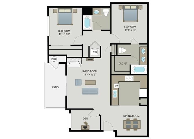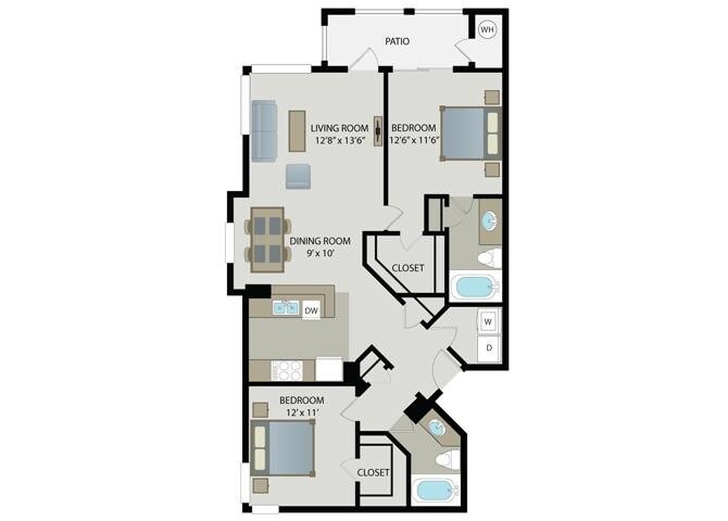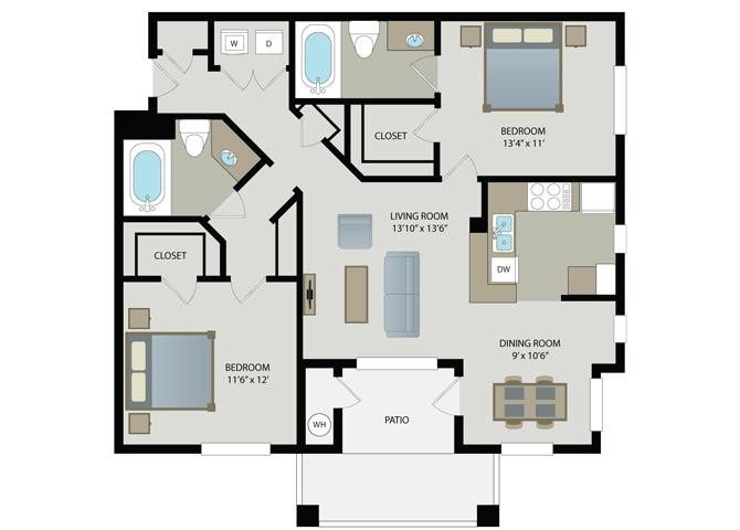 2 Beds, 2 Baths, 1096 sq ftAvailable NowModel Gallery