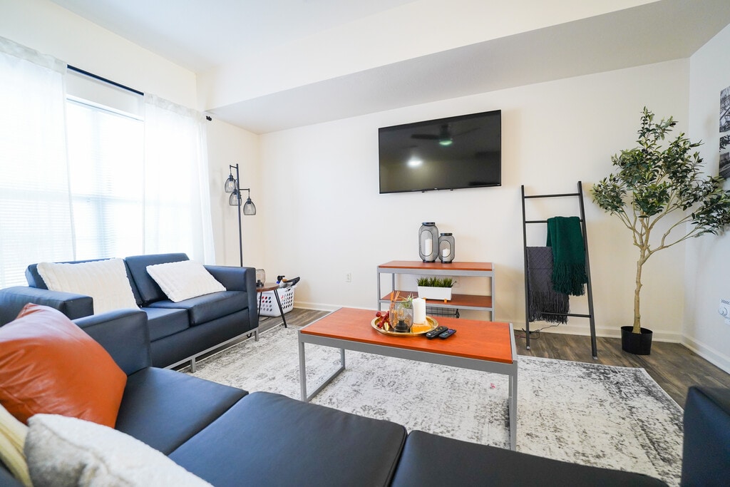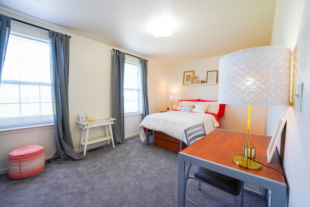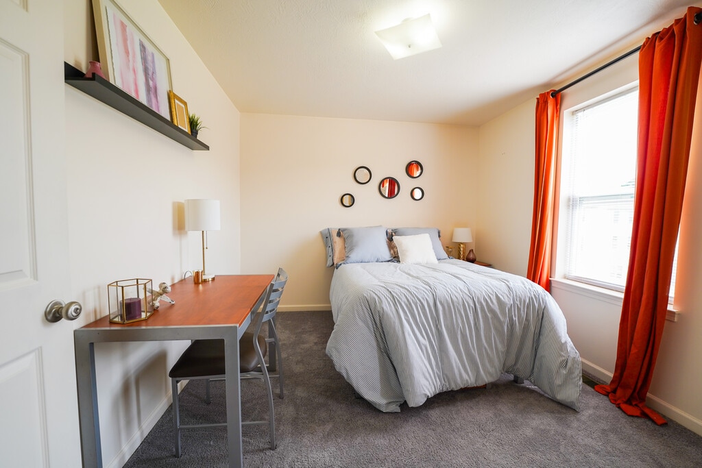 The Heights at Slippery Rock - Off Campus Housing near SLU offers 4 bedrooms, 4.5 bath townhomes rented by the room. Each townhome has a shared common area and an individually locking private bedroom and bathroom for each resident. There is also a half bath in the common area for guests. Each unit is fully furnished and includes all appliances.