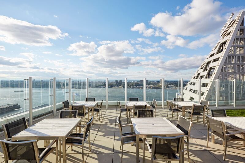 August 1, 2015For the next year, this will be a four star apartment. Big windows, uninterrupted views of the west side down to Jersey City, nothing in the way of sunsets or the Hudson. But three big buildings are going up South, West, and North and it'll all be gone by 2017. And constant construction sounds. Staff great, roof nice, free shuttle to subway.Review from Apartments.com