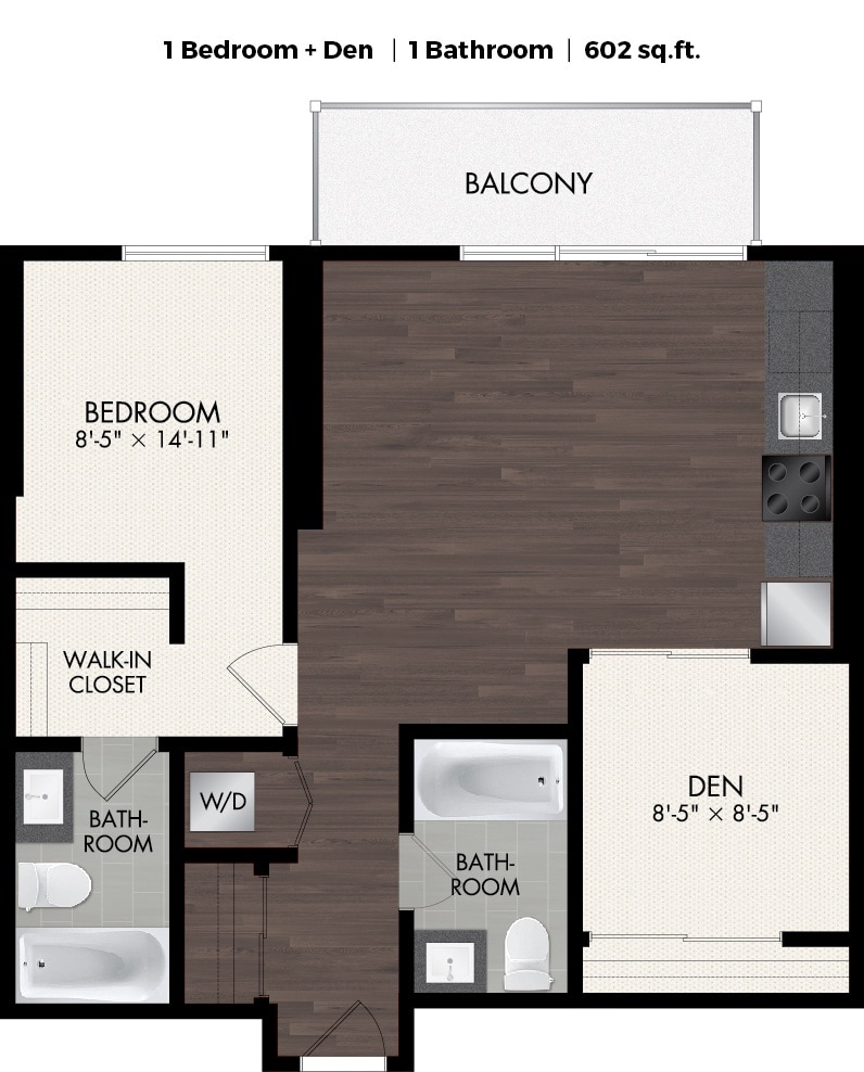 1 Bed, 1 Bath, 411 sq ftAvailable NowModel Gallery