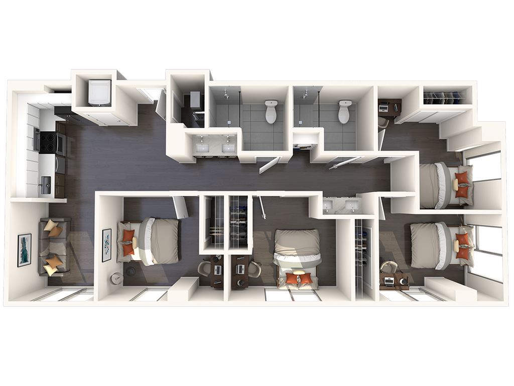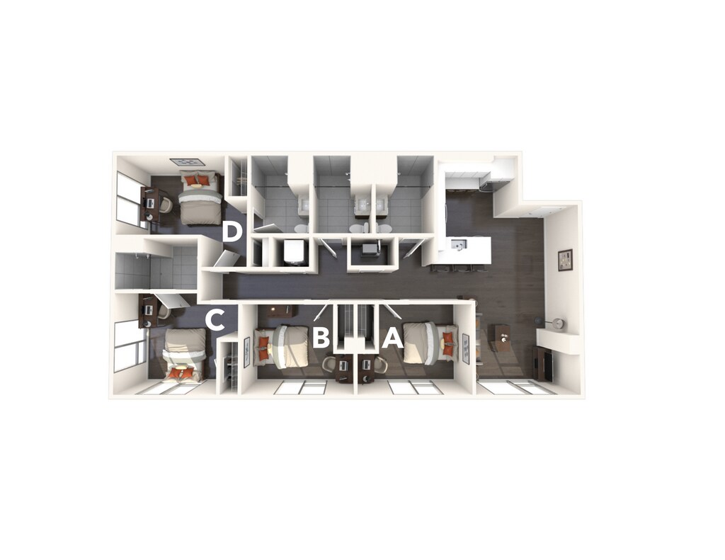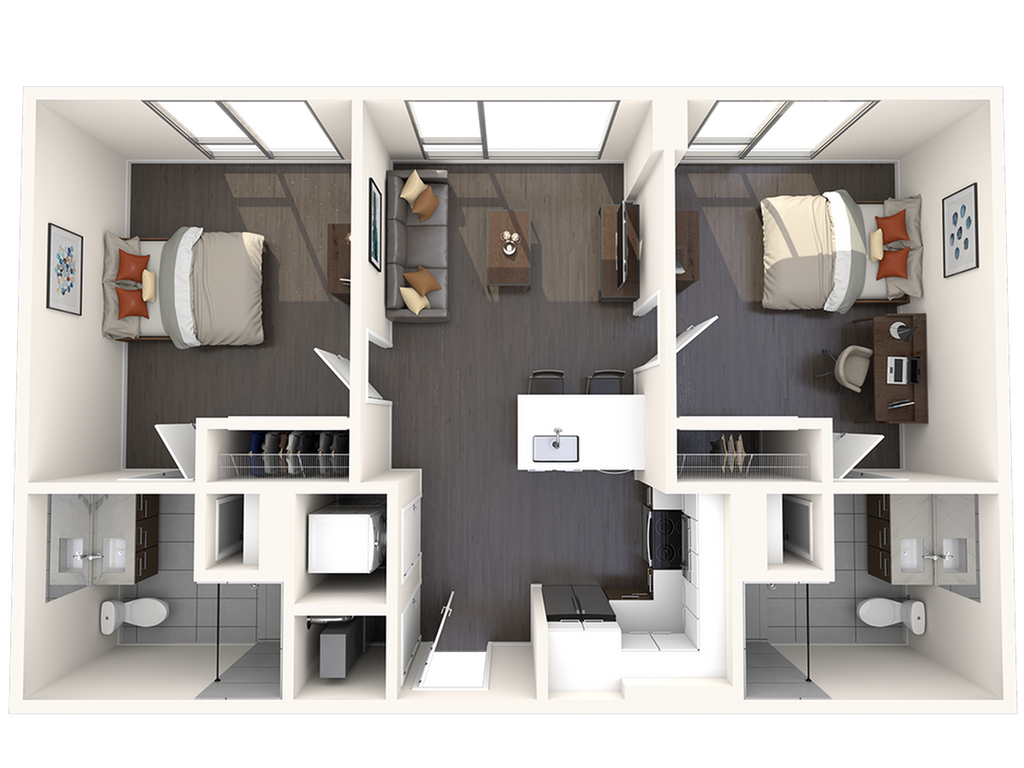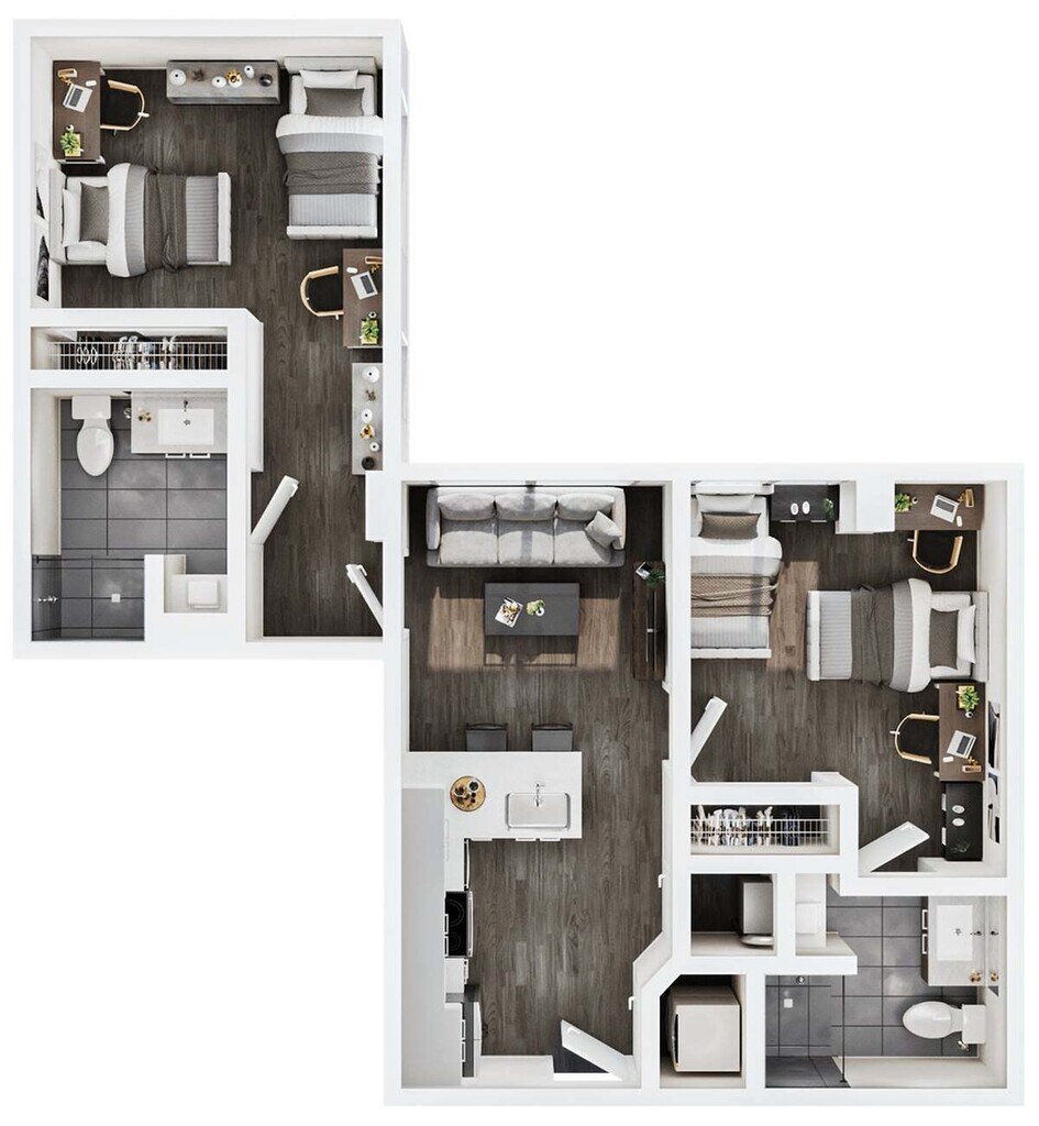 2BR/2BA - B1A Double Occupancy - Floorplan 1 Apartment Unit: Double OccupancyApartment Model: 2BR/2BA - B1A Double Occupancy$1,2492 Bedroom, 2 Bath, 789 sq ftAvailable August 20, 20262BR/2BA - B1A