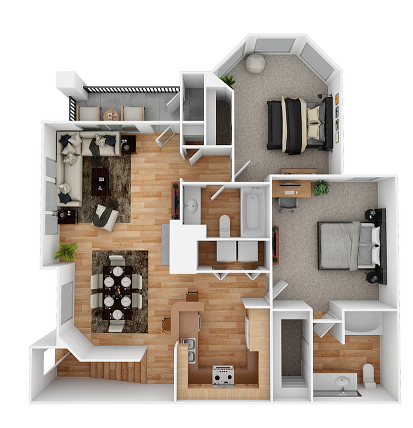 2 Beds, 2 Baths, 1017 sq ftModel Gallery