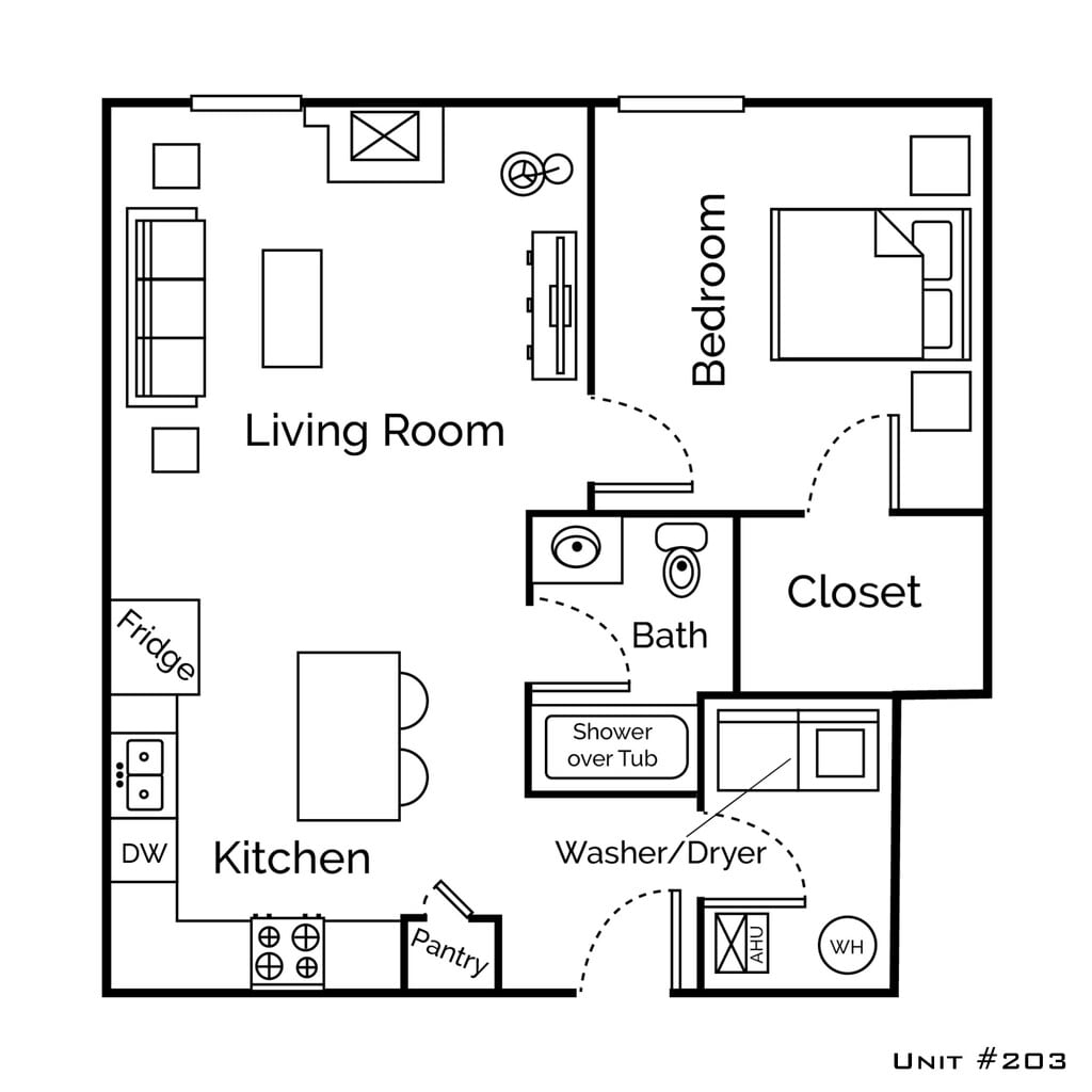 1 Bedroom, 1 Bath - Floorplan 1 ![]()