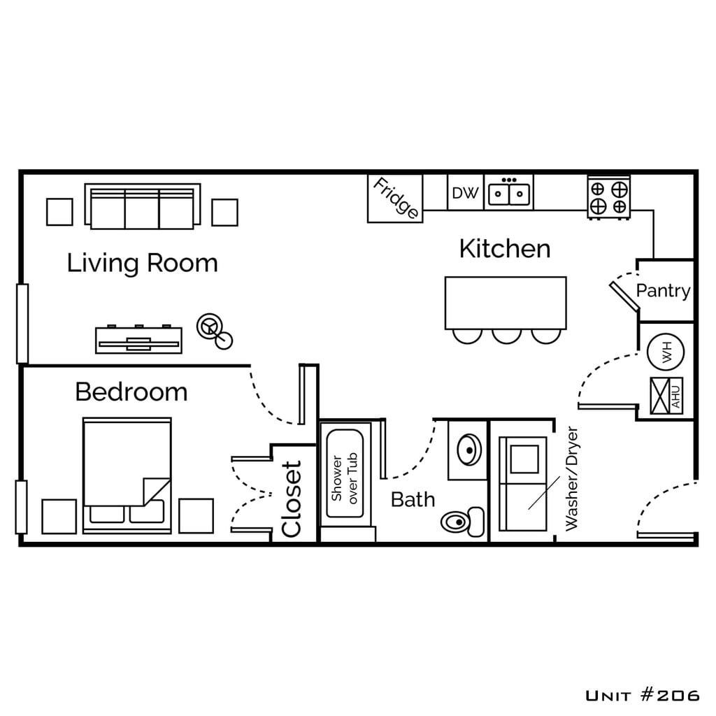 1 Bedroom, 1 Bath - Floorplan 10 Apartment Unit: 106Apartment Model: 1 Bedroom, 1 Bath$1,4491 Bedroom, 1 Bath, 896 sq ftAvailable Now![]()