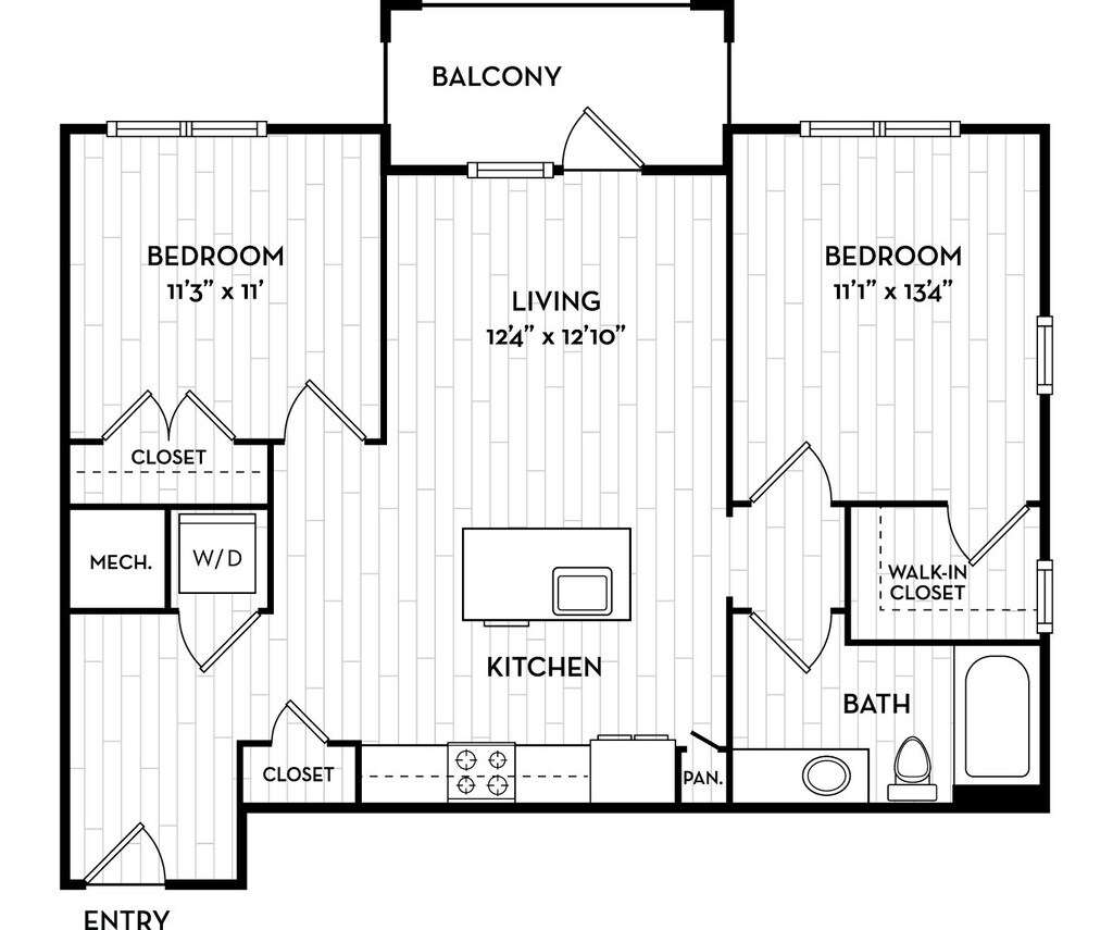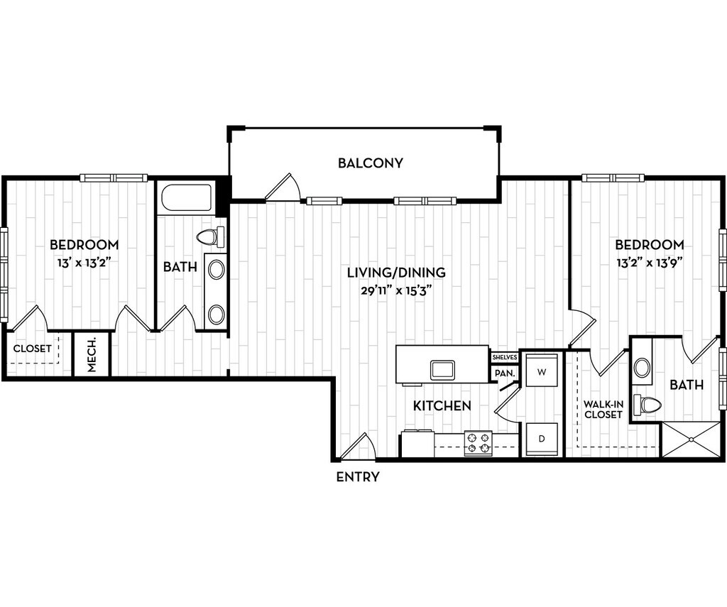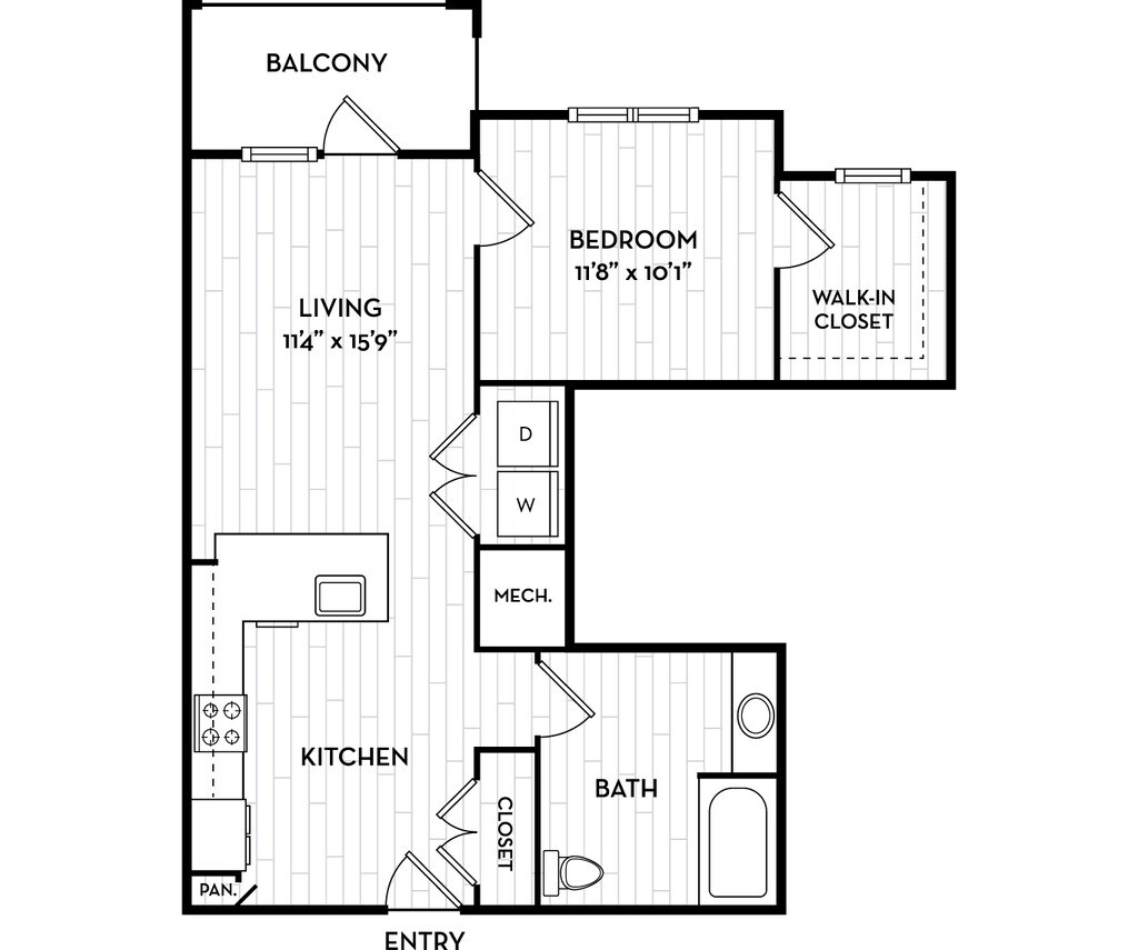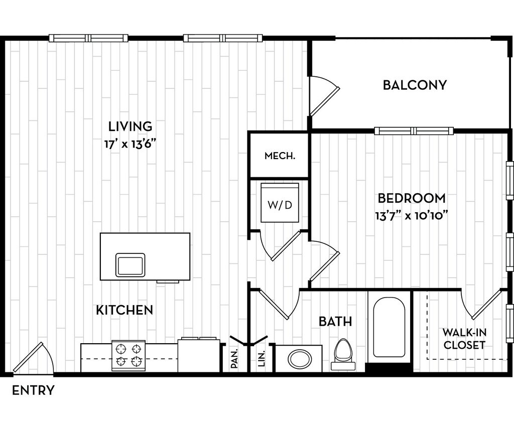 Bunting - Floorplan 2 Apartment Unit: 2105Apartment Model: Bunting$2,0051 Bedroom, 1 Bath, 723 sq ftAvailable NowPlover