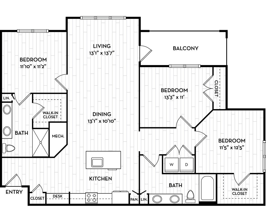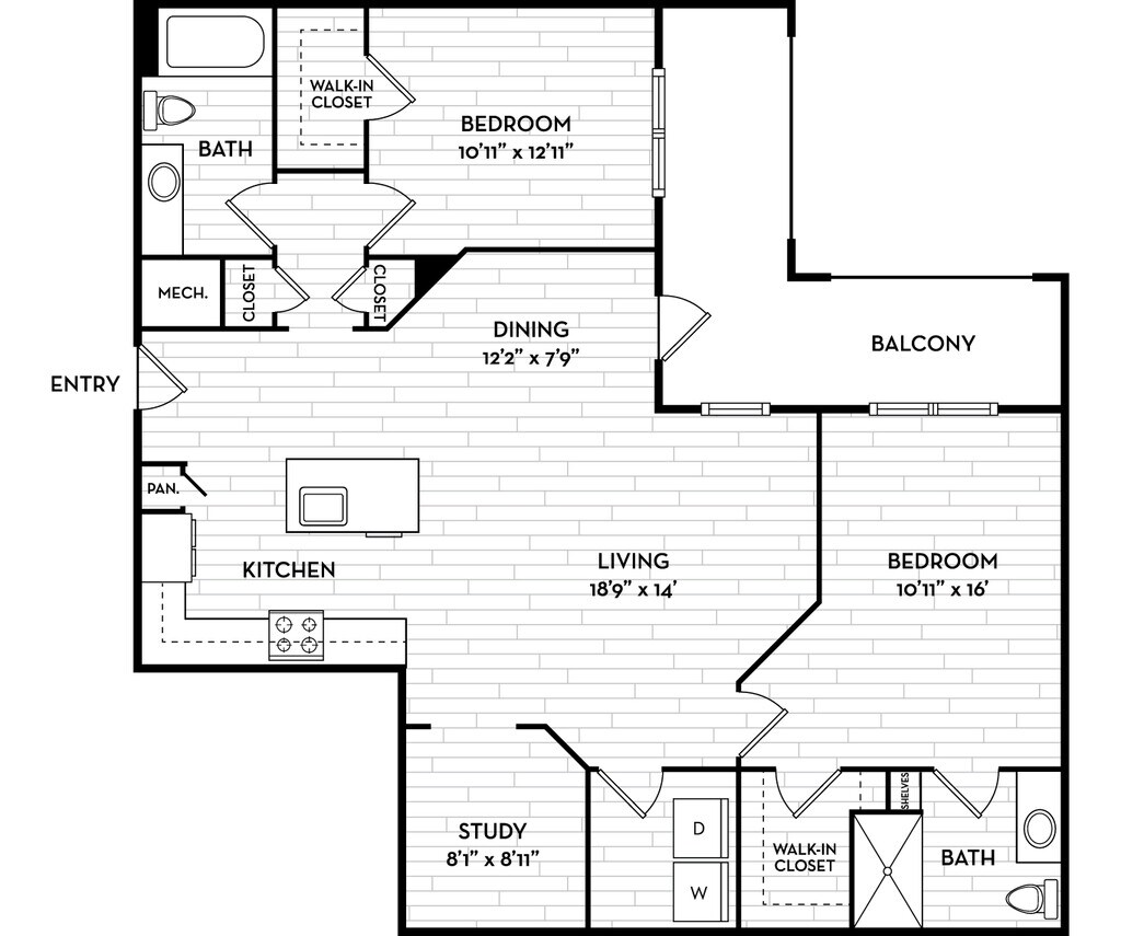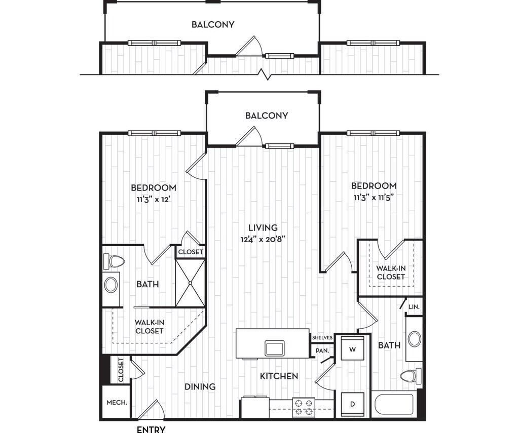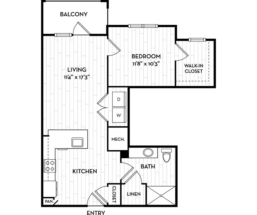 Bunting - Floorplan 2 Apartment Unit: 2105Apartment Model: Bunting$2,0051 Bedroom, 1 Bath, 723 sq ftAvailable NowPlover