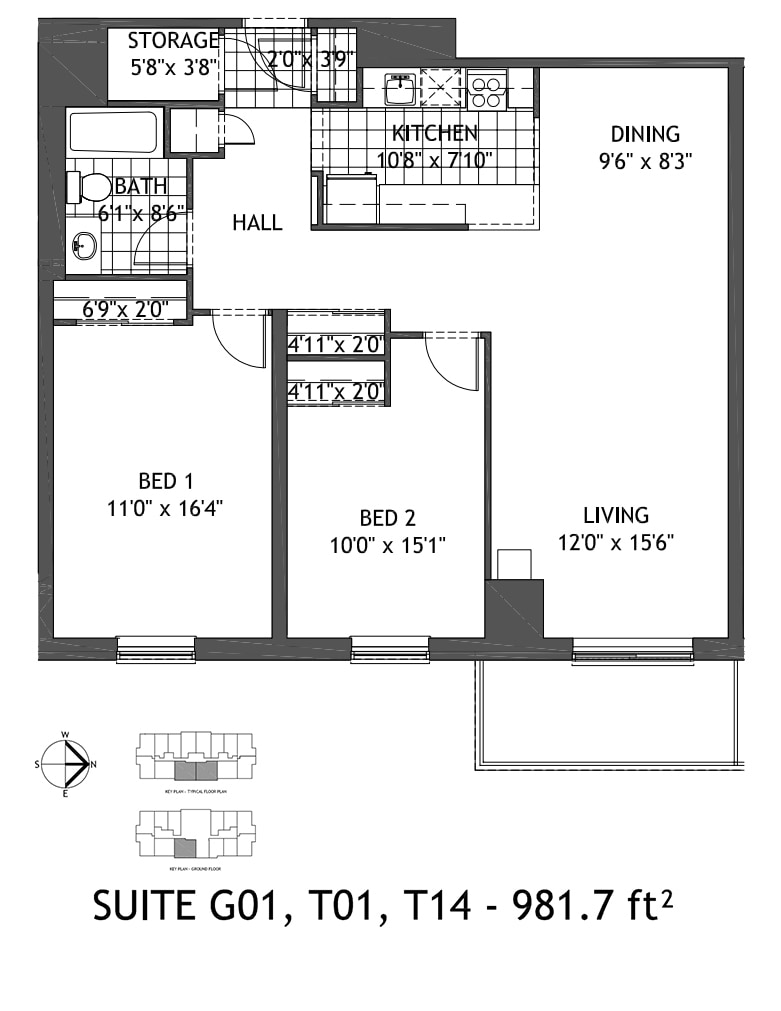 1 Bedroom + Den - Floorplan 2 2 Bedrooms