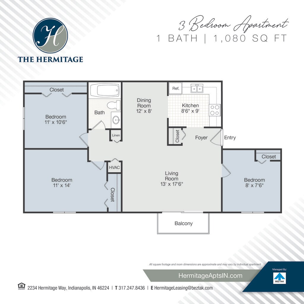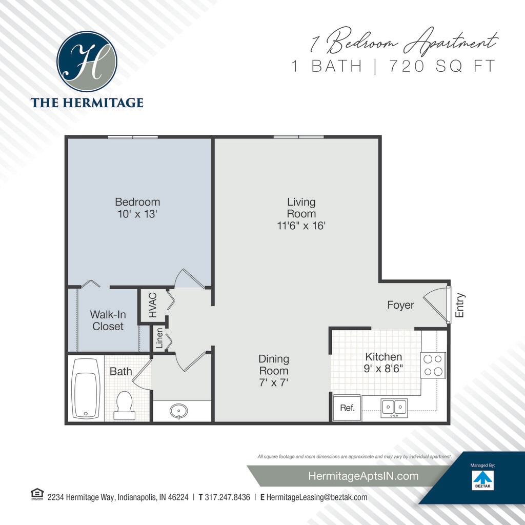 This property is managed by Beztak, 2025 recipient of the US Best Managed Companies for the sixth year in a row, sponsored by Deloitte Private and The Wall Street Journal. Call and let us tell you why! The Hermitage is located within walking distance to the award-winning Speedway Schools!