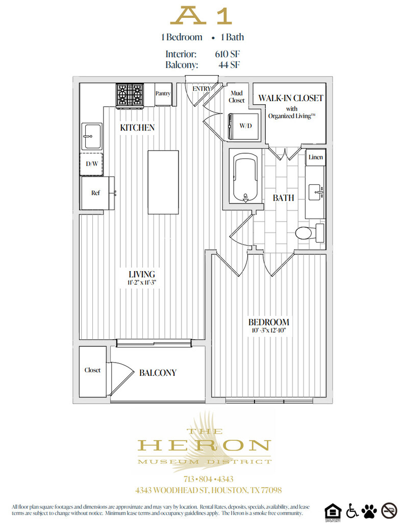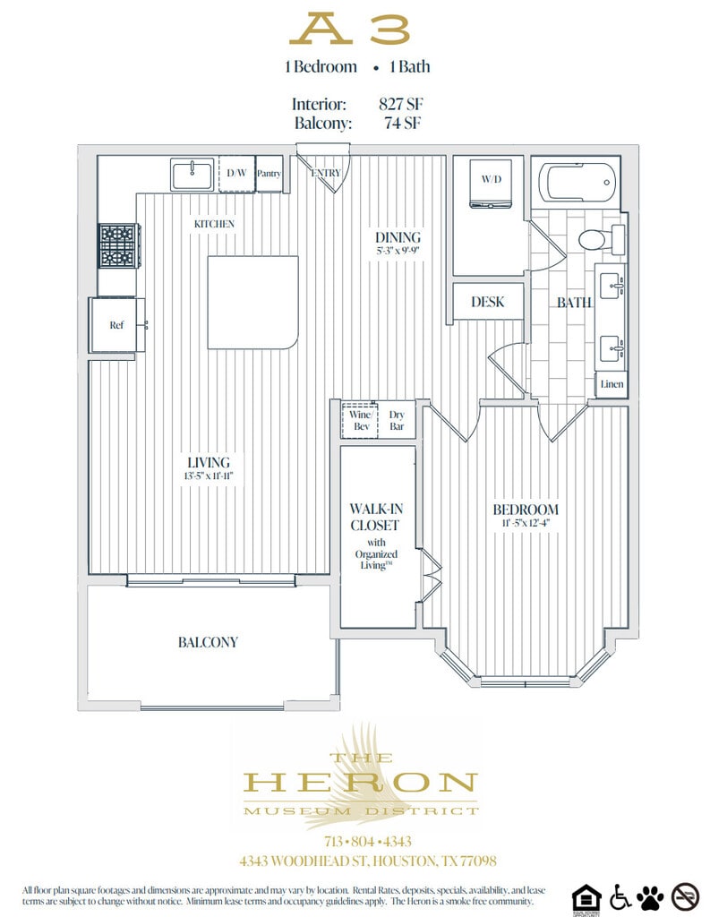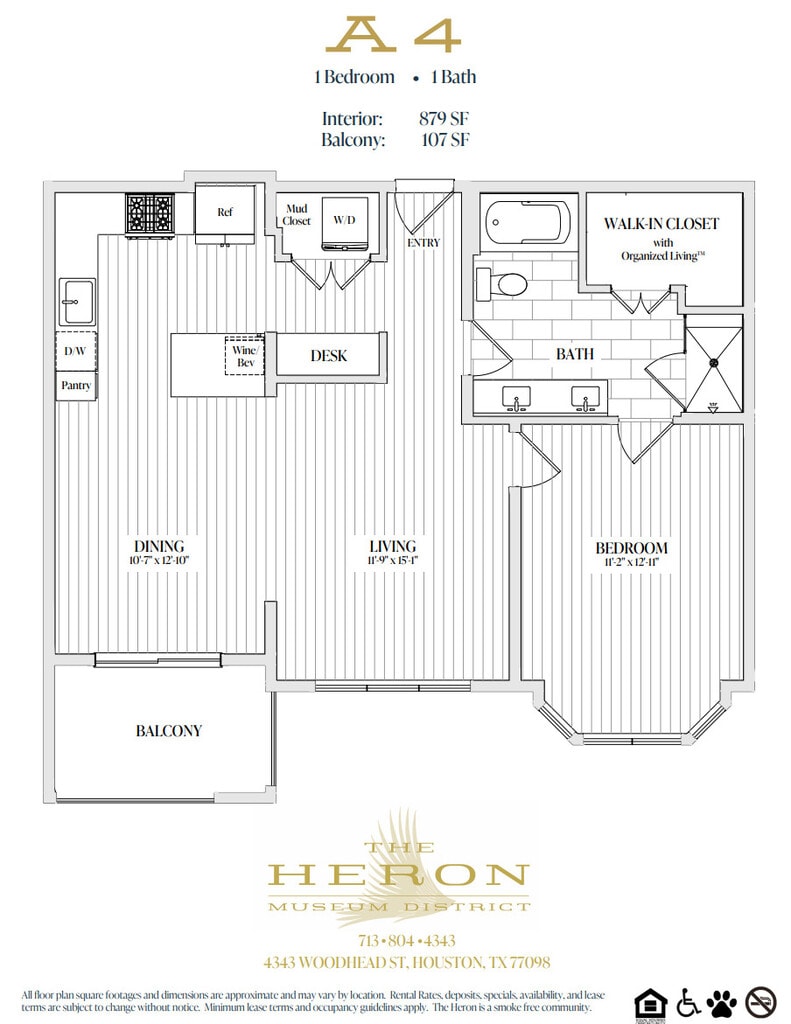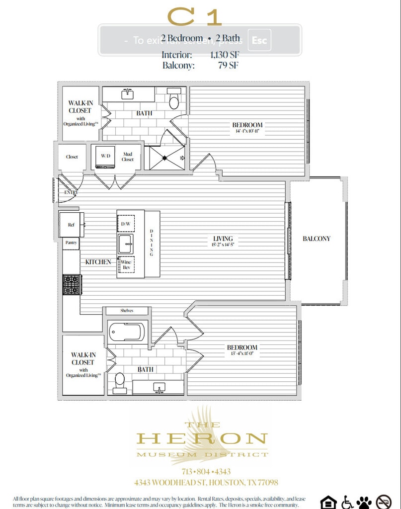The Heron Museum District offers 1 to 2 Bedroom apartments having 610–1,713 sqft. Here is the current pricing and availability: