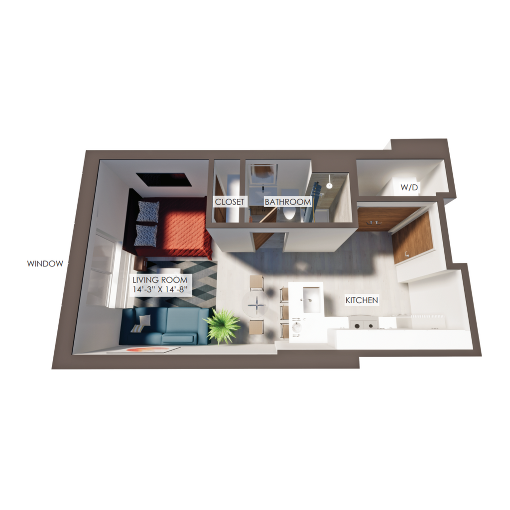 Studio, 1 Bath, 400-405 sq ftAvailable January 30, 2026Model Gallery