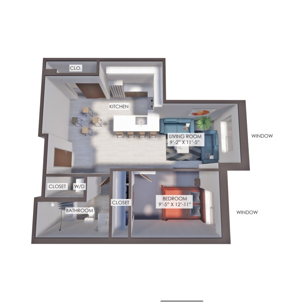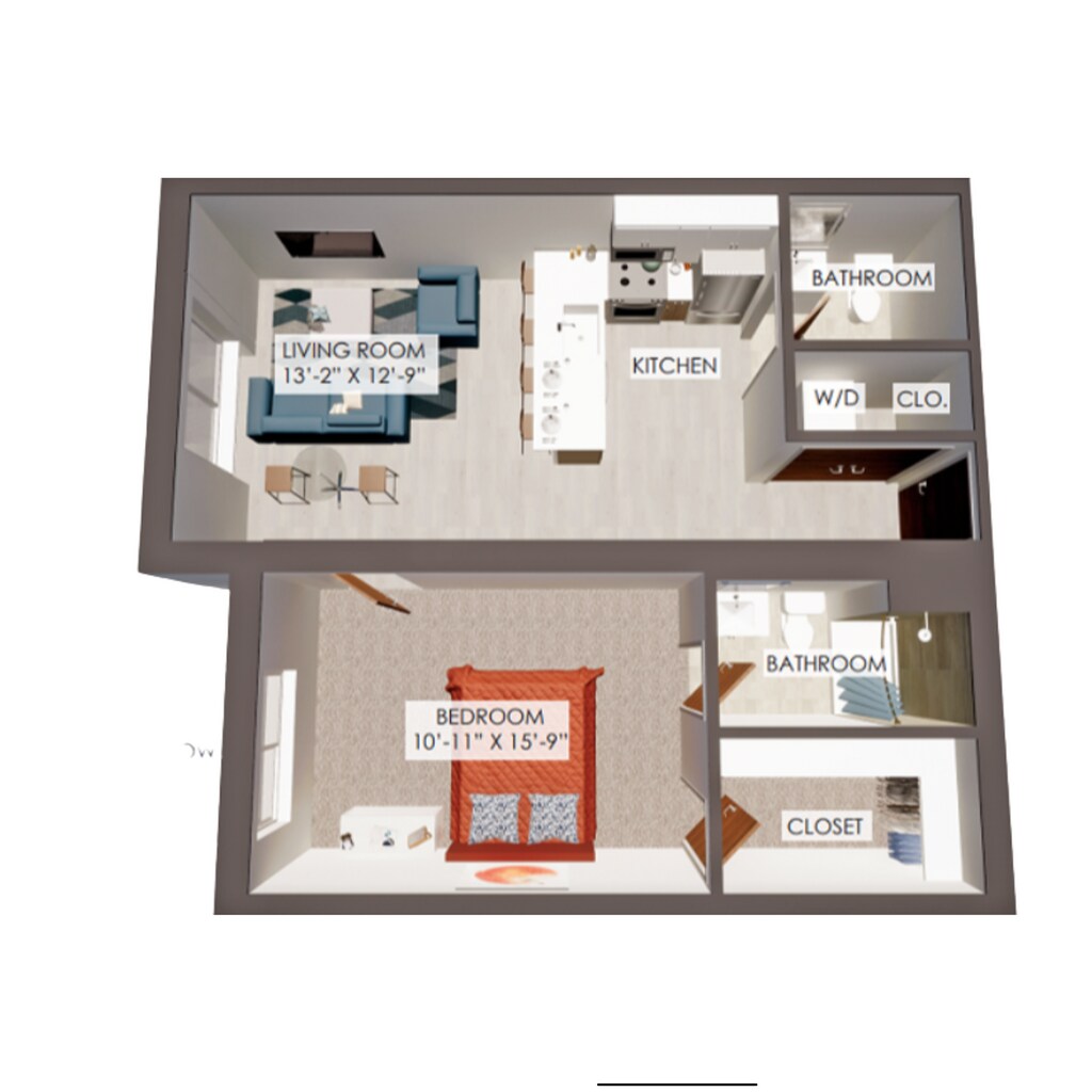 OF - Floorplan 1 Apartment Unit: 336Apartment Model: OF$1,349Studio, 1 Bath, 400 sq ftAvailable January 30, 20261 Bedroom