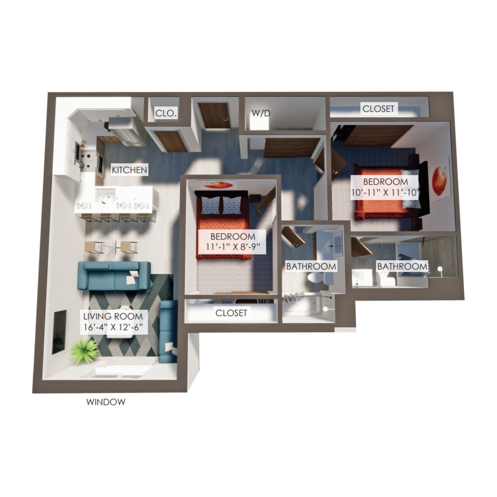 1 Bed, 1 Bath, 877-883 sq ftAvailable NowLargest 1 BedroomThis is the largest 1 Bedroom at this PropertyModel Gallery