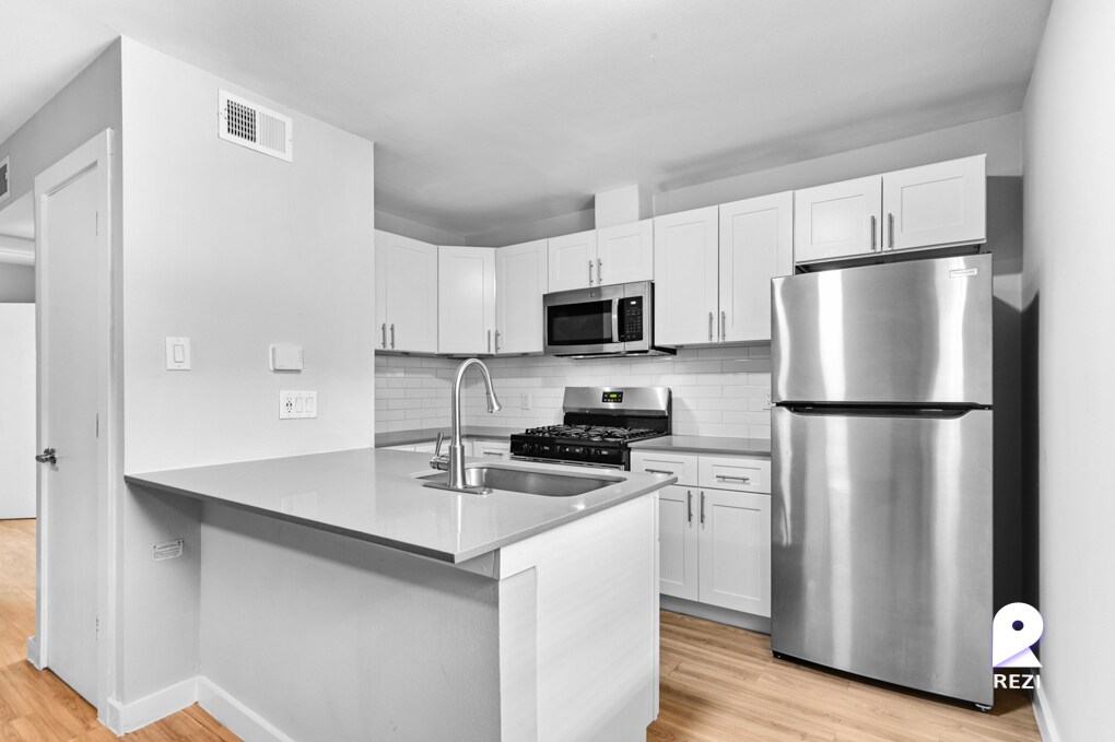 Welcome to your beautifully renovated one-bedroom, one-bath apartment home! This charming space features elegant faux wood floors that add a touch of sophistication to every room. The large windows are adorned with stylish three-inch wood blinds, allowing for perfect light control and privacy. The apartment boasts designer finishes throughout, creating a modern and luxurious atmosphere. The open-concept living area is perfect for entertaining, while the well-appointed kitchen includes sleek countertops and contemporary fixtures. The spacious bedroom offers ample comfort, making it easy to unwind after a long day. Experience the perfect blend of style and comfort in your new home!