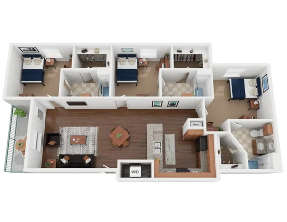 Apartment Model: 3X3$8223 Bedroom, 3 Bath, 1107 sq ftAvailable Now3X3 - Floorplan 1 Apartment Unit: PrivateApartment Model: 3X3$8223 Bedroom, 3 Bath, 1107 sq ftAvailable NowApartment Unit: PrivateApartment Model: 3X3$8223 Bedroom, 3 Bath, 1107 sq ftAvailable August 17, 20264 Bedrooms
