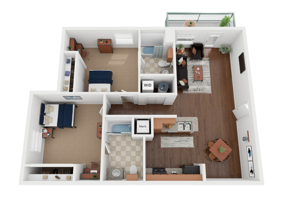 2 Beds, 2 Baths, 840 sq ftPlus FeesAvailable August 17, 2026Model Gallery