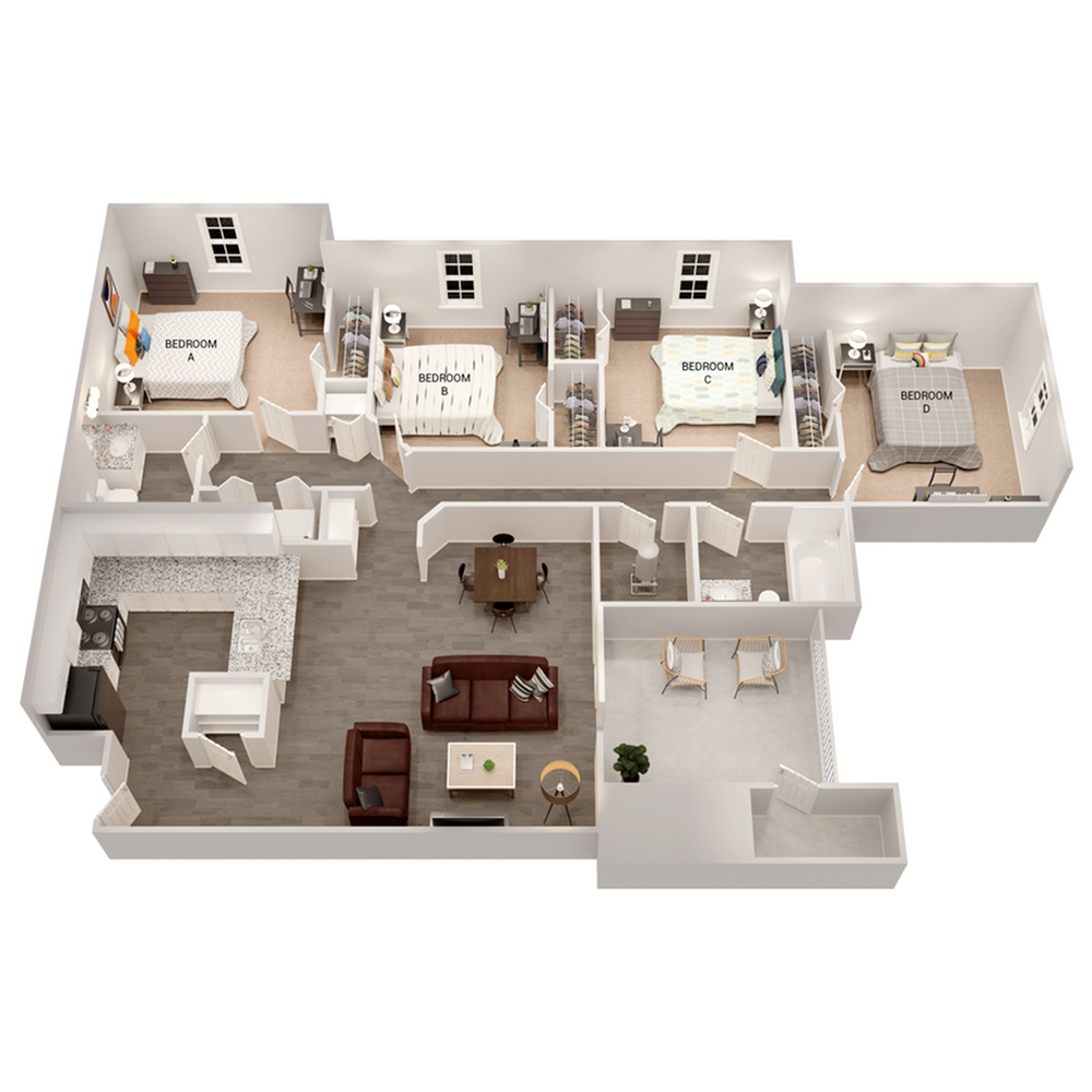 4 Beds, 2 Baths, 1194 sq ftAvailable NowModel Gallery