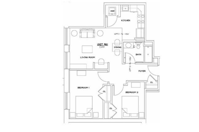 2 Bedrooms 1 Bath with all Utilities - Floorplan 10 2 Bedrooms 2 Baths with all Utilities