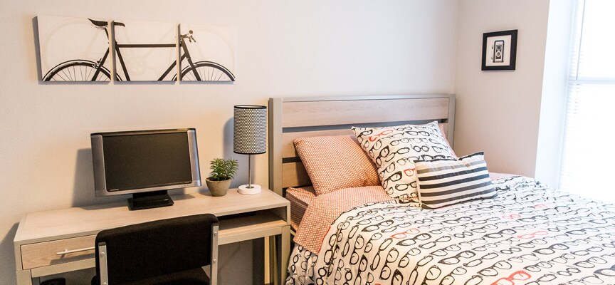 THE HIVE gives you modern living with all the comforts of home. Leave the restrictions and hassles of dorm life behind! Apartments come furnished so don’t bother packing the U-HAUL–we’ve got your covered! High speed Internet, Wi-Fi, HD digital cable, and flat-screen TVs are included at no extra cost! THE HIVE provides state-of-the-art security, surveillance, fire safety and on-site management for the well-being of our residents and the peace of mind of their parents. Best of all, THE HIVE is less expensive than the dorms! NOW LEASING FOR 2020/2021!