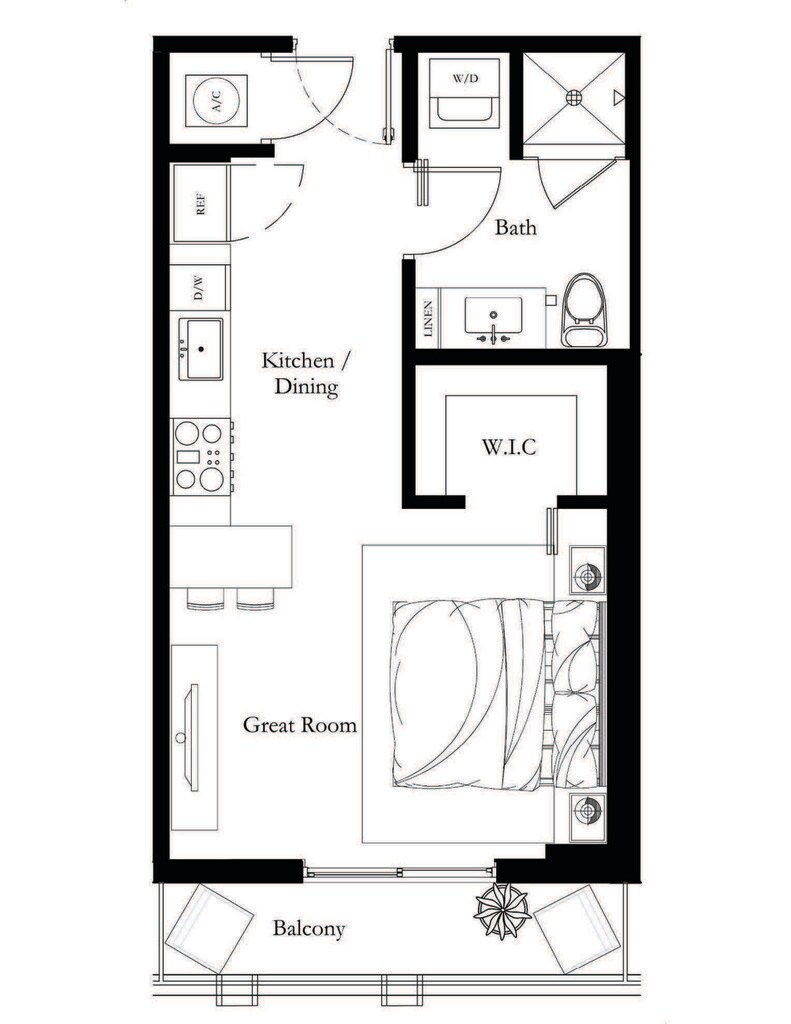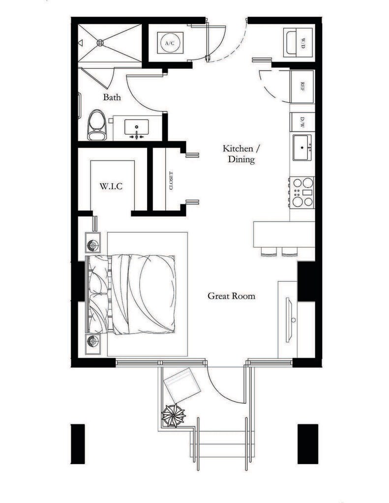 Studio, 1 Bath, 530 sq ftAvailable NowLargest StudioThis is the largest Studio at this PropertyModel Gallery