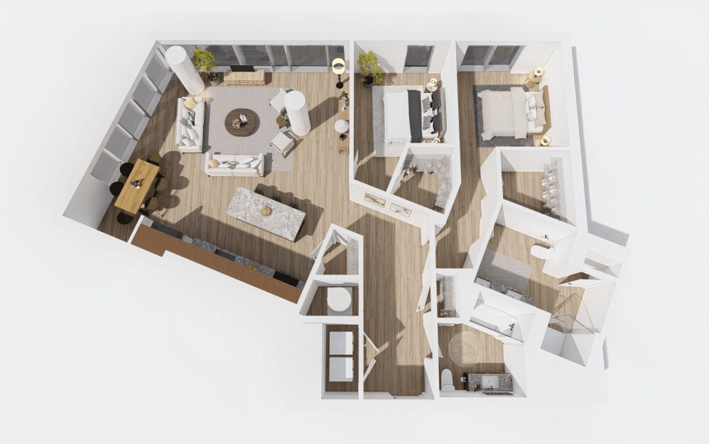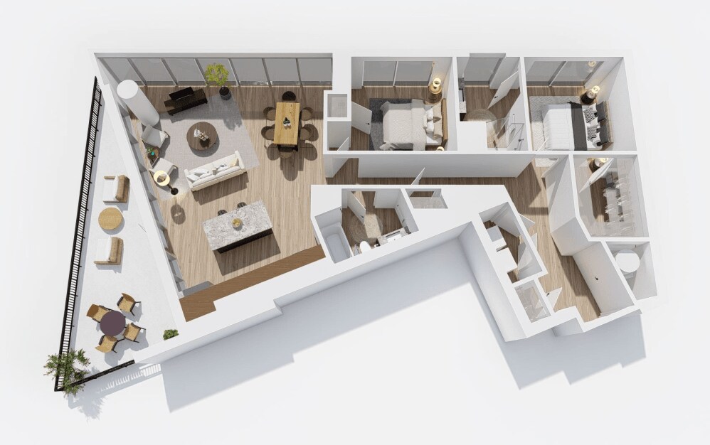 The Holston offers Studio to 3 Bedroom apartments starting from $1,500 and having 499–1,759 sq ft. Here is the current pricing and availability: