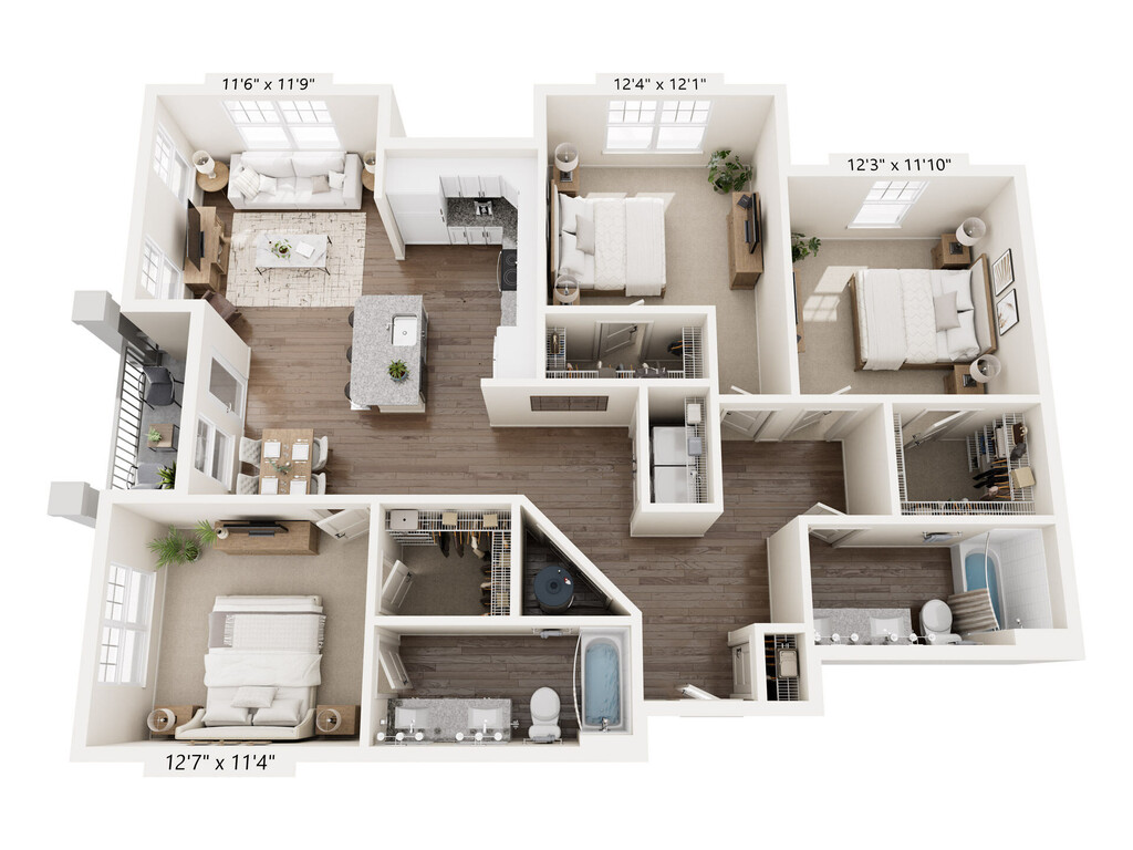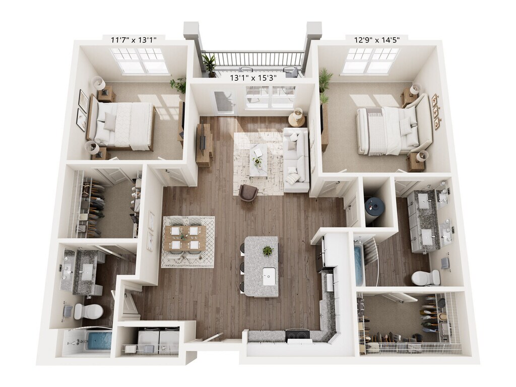 Apartment Model: B1From $1,6952 Bedroom, 2 Bath, 1176 sq ftAvailable NowFloor plans are artist's rendering. All dimensions are approximate. Actual product and specifications may vary in dimension or detail. Not all features are available in every rental home. Prices and availability are subject to change. Base rent is based on monthly frequency. Additional fees may apply, such as but not limited to package delivery, trash, water, amenities, etc. Deposits vary. Please see a representative for details.