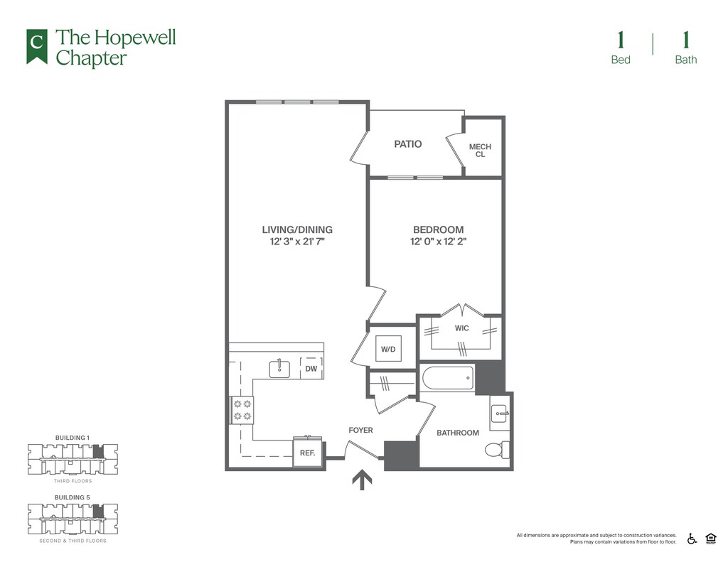 1 Bed, 1 Bath - Floorplan 1 ![]()