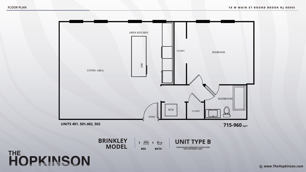 Welcome to “The Hopkinson” where you’ll discover the perfect blend of modern living and contemporary comfort that awaits you. The Hopkinson is your gateway to a vibrant community. Discover your new home, designed to redefine your lifestyle! Join us in our vibrant community at The Hopkinson and experience the best of convenience, comfort and relaxation. Your journey begins here! Elevate your experience at The Hopkinson! The Hopkinson is your new premier destination in the heart of Bound Brook, New Jersey. Step into a modern vibrant blend of contemporary comfort within our 1- & 2-bedroom apartments. Just steps away, you will discover a rich tapestry of trendy lifestyle areas and community advantages that infuse your daily routine with warmth and vibrancy. With an array of community amenities, local activities, and nearby recreational perks, The Hopkinson embodies the all-encompassing experience. Nested between I-287 and U.S. 22 in the thriving Bound Brook community, this location is your canvas to create and innovate. Benefit from Bound Brook’s newly designated redevelopment zone, booming community, and strategic location. Minutes away from Rutgers University, Robert Wood Johnson Hospitals and Menlo Park Mall. Provides easy access to regional transportation, major employment centers, and nearby lifestyle amenities. Located within a 5-minute walk to the Bound Brook NJ transit line, which services the Raritan Valley Line and provides transportation to Manhattan in 60 mins. Accessibility is prime with a walk score of 82 and Bike score of 75. Conveniently located bus line 65, 117 and 114 along with a five-minute walk from the Raritan Valley Line at the Bound Brook stop. In the heart of Bound Brook NJ We welcome you to unleash your potential, create a unique narrative, and find your rhythm in a place that resonates with you. We invite you to make this vibrant community the backdrop to your own heartwarming and thrilling journey. Redefine the art of living! Indulge yourself in the perfect blend of modern comforts as vibrant opportunities await you, making every day an enchanting chapter in your Bound Brook story. This isn’t just any living destination, it’s the one you’ve been eagerly anticipating in the heart of Bound Brook NJ.