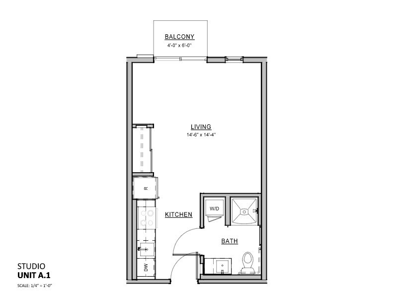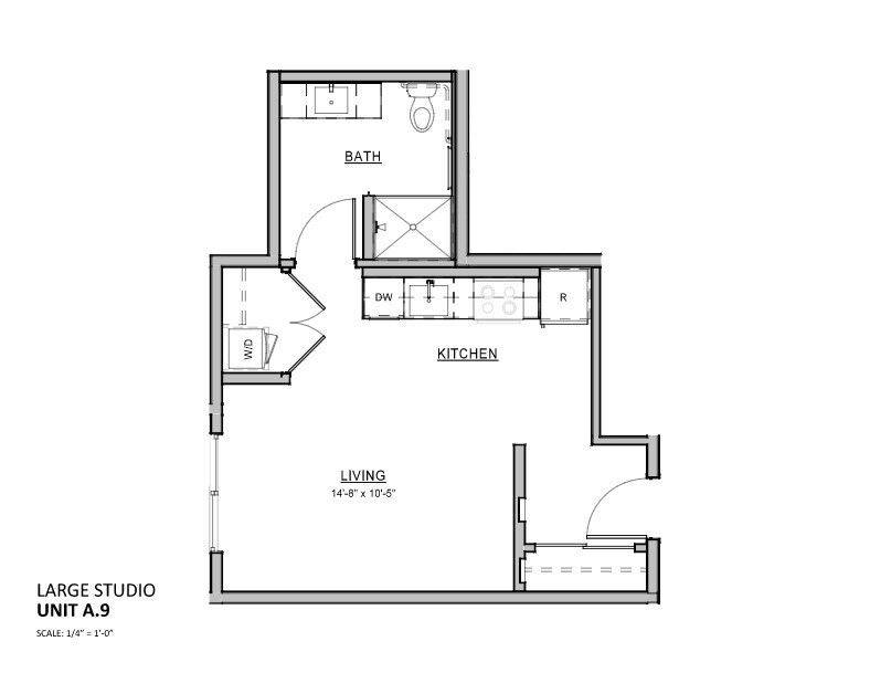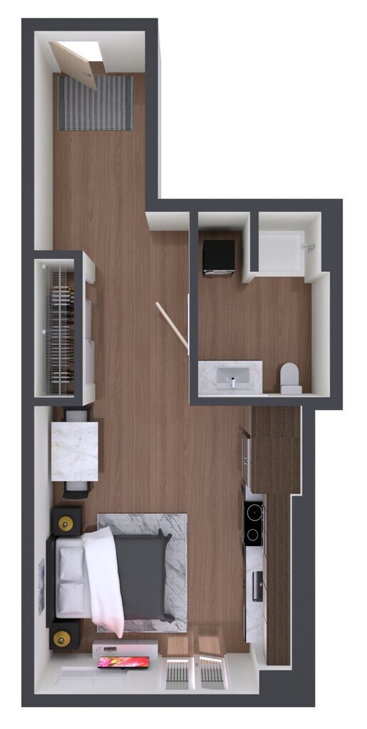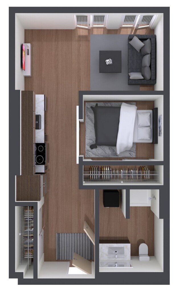 Studio A.1 - Floorplan 14 Apartment Unit: 414Apartment Model: Studio A.1Studio, 1 Bath, 379 sq ftAvailable Now![]()