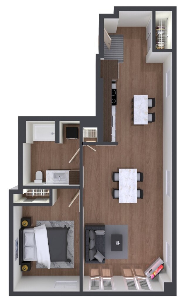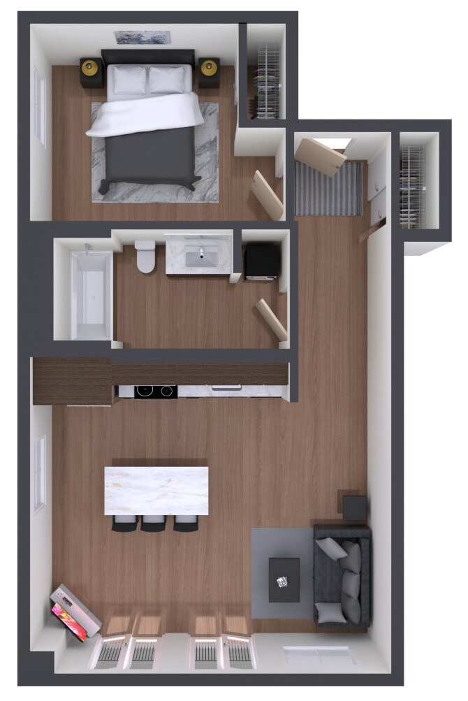 Studio A.2 - Floorplan 3 Apartment Unit: 420Apartment Model: Studio A.2Studio, 1 Bath, 372 sq ftAvailable Now![]()