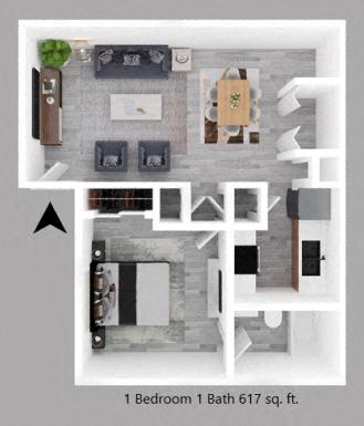 1 Bed, 1 Bath, 617 sq ftAvailable NowModel Gallery