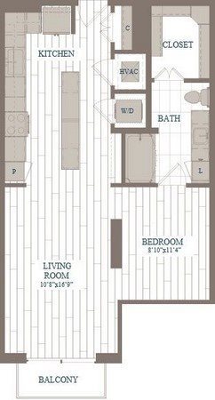 Radio City - A20 - Floorplan 1 Apartment Unit: 614Apartment Model: Radio City - A201 Bedroom, 1.5 Bath, 924 sq ftAvailable NowMidtown -A10