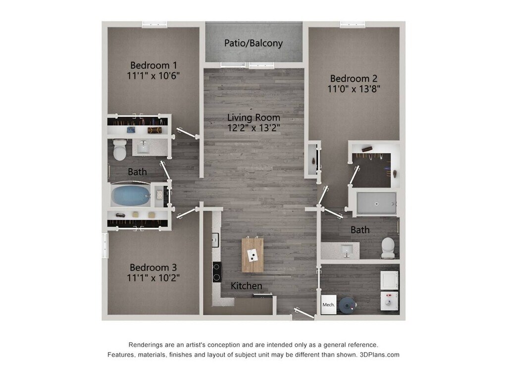 Apartment Model: C13 Bedroom, 2 Bath, 1248 sq ftUnavailable![]()