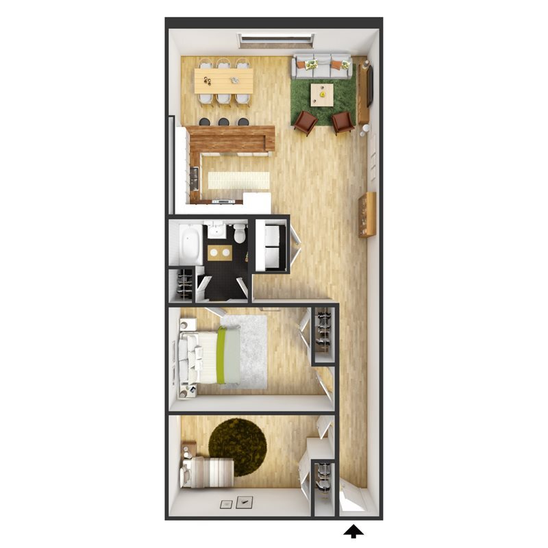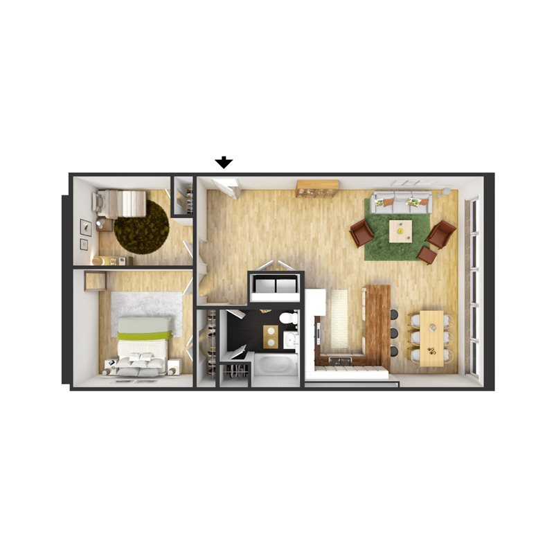The Perry - Floorplan 5 Apartment Unit: 118Apartment Model: The Perry$1,3851 Bedroom, 1 Bath, 771 sq ftAvailable Now![]()