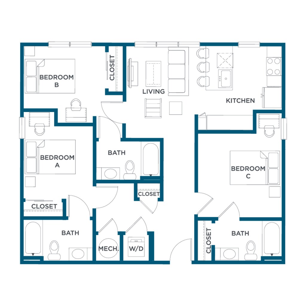 Apartment Model: B32 Bedroom, 2 Bath, 793 sq ftAvailable Now![]()