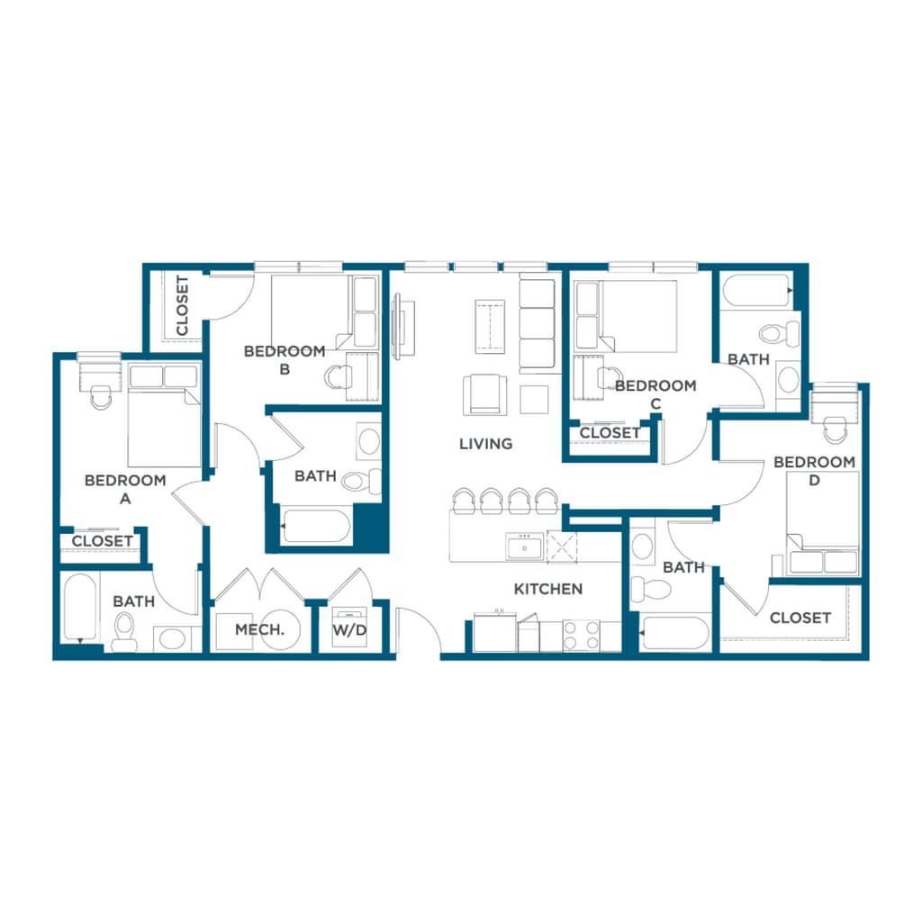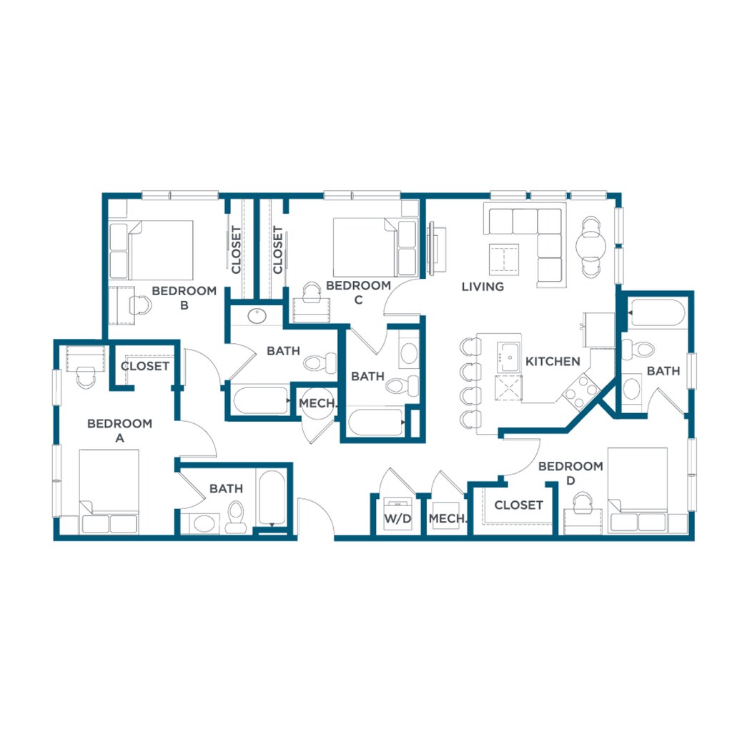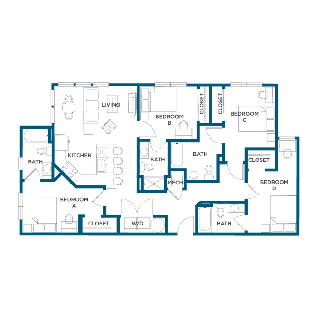 B4 - Floorplan 2 Apartment Unit: PrivateApartment Model: B42 Bedroom, 2 Bath, 847 sq ftAvailable NowApartment Unit: PrivateApartment Model: B42 Bedroom, 2 Bath, 847 sq ftAvailable August 4, 2026Floorplan B1