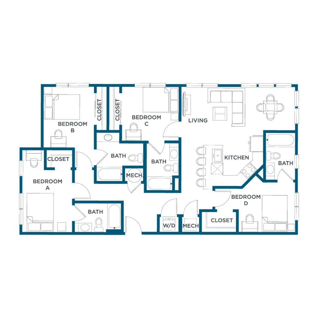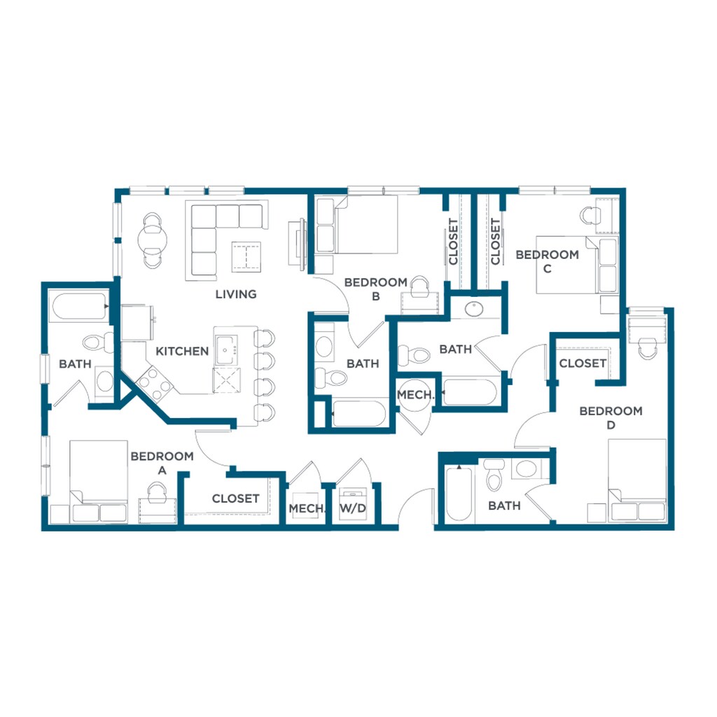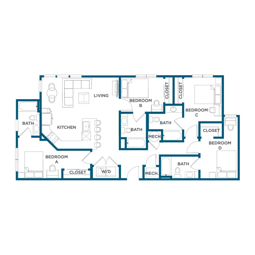 B4 - Floorplan 2 Apartment Unit: PrivateApartment Model: B42 Bedroom, 2 Bath, 847 sq ftAvailable NowApartment Unit: PrivateApartment Model: B42 Bedroom, 2 Bath, 847 sq ftAvailable August 4, 2026Floorplan B1
