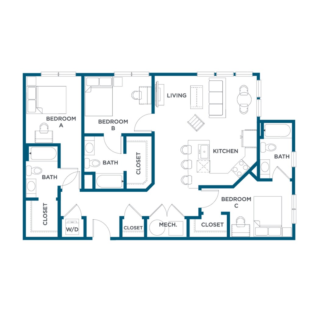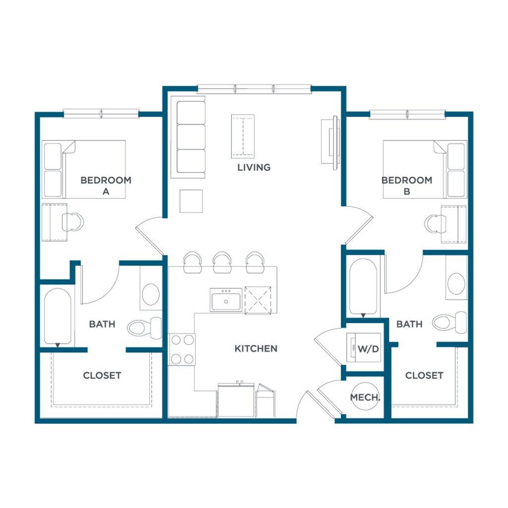 Apartment Model: B22 Bedroom, 2 Bath, 763 sq ftAvailable Now![]()