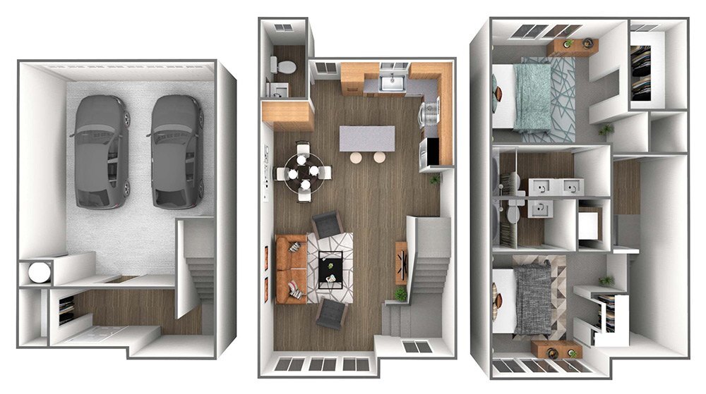 2 Bedroom + 2.5 Baths - Floorplan 1 3 Bedrooms
