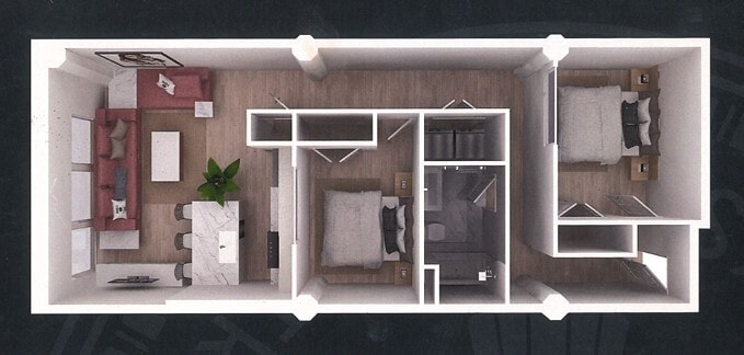 Studio to 2 Bedroom Apartments at The Huffman at The Fire Blocks District currently range from $950 to $1,750