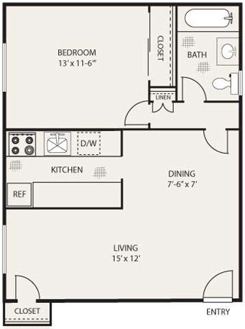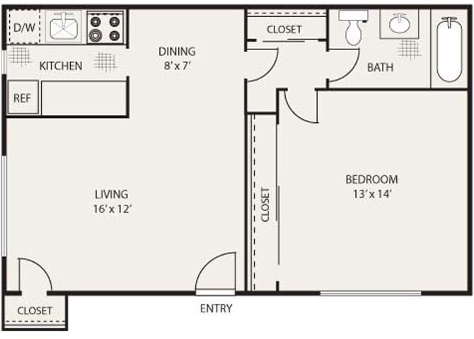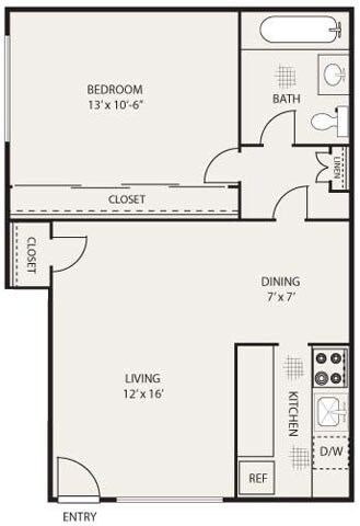 Apartment Model: The ColoradoCall For Rates1 Bedroom, 1 Bath, 640 sq ftUnavailableThe Colorado - Floorplan 1 The Colorado Plus