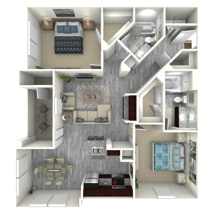 2 Beds, 2 Baths, 1060 sq ftLargest 2 BedroomThis is the largest 2 Bedroom at this PropertyModel Gallery