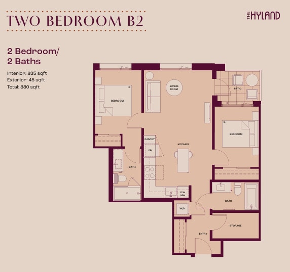 2 Beds, 2 Baths - Floorplan 5 ![]()