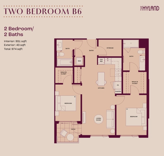 2 Beds, 2 Baths - Floorplan 6 ![]()